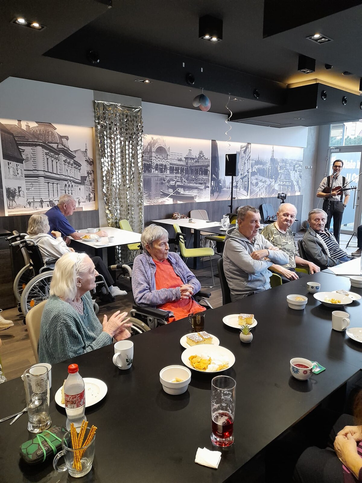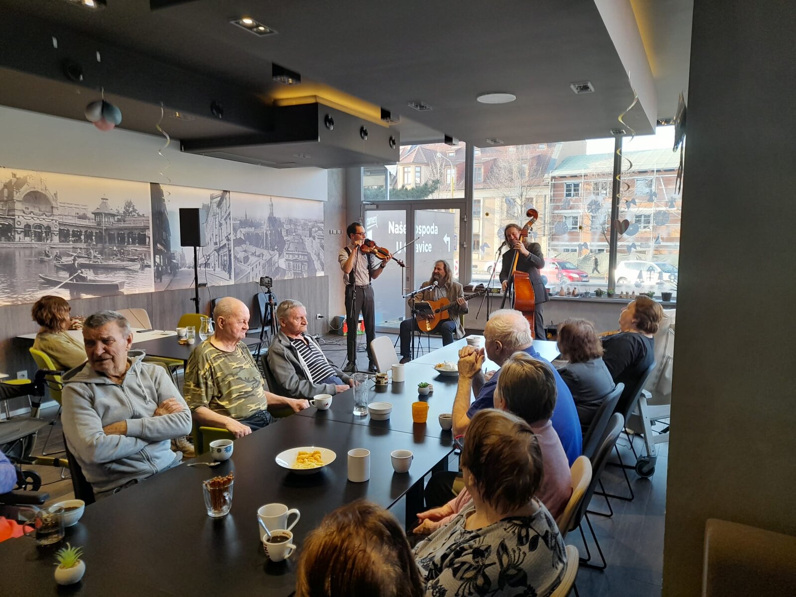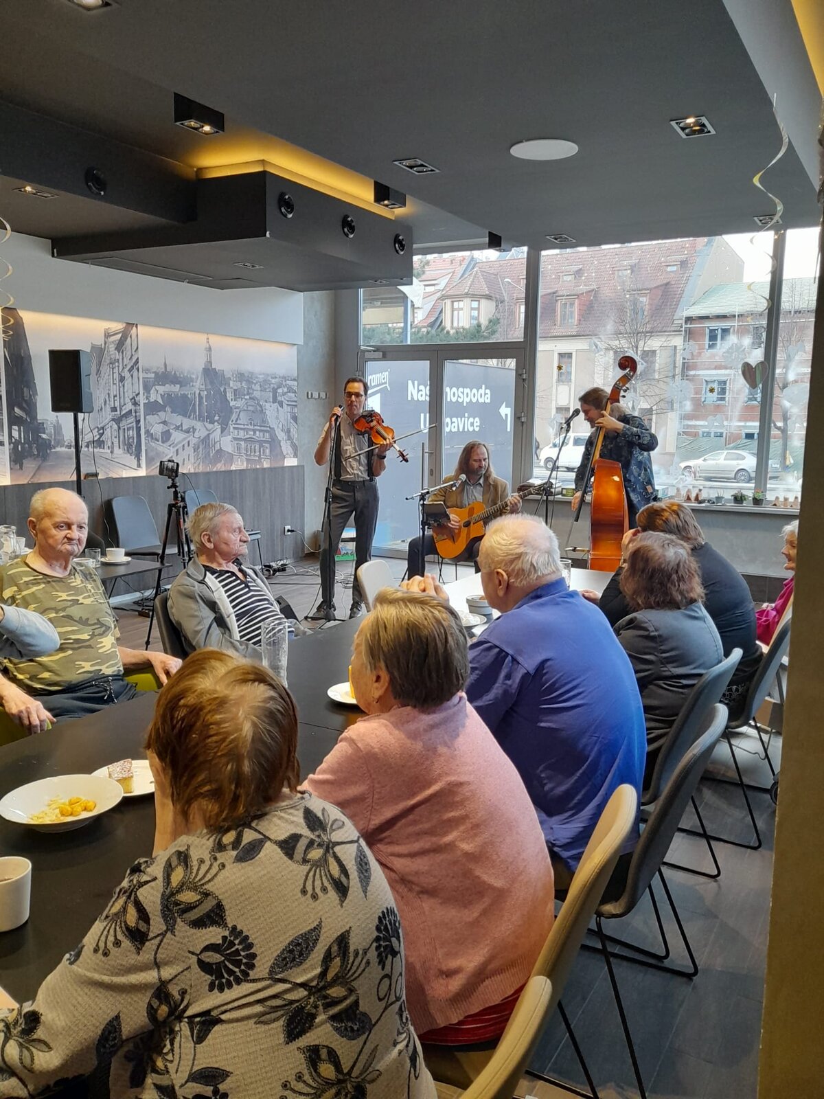 V druhém únorovém týdnu jsme měli tu čest, seznámit se se skupinou Jezz Perutě. Pánové nám zazpívali a zahráli na basu, housle, kytaru a jiné nástroje. Posezení mělo příjemnou atmosféru.