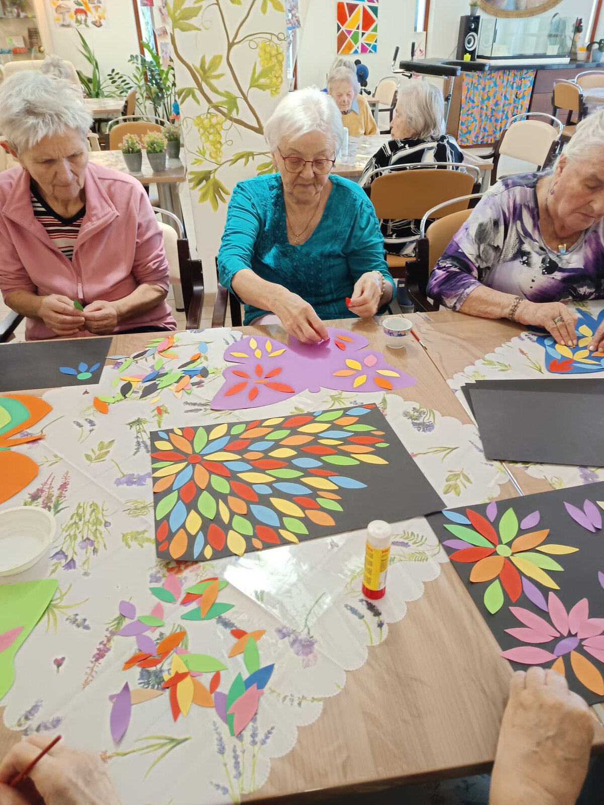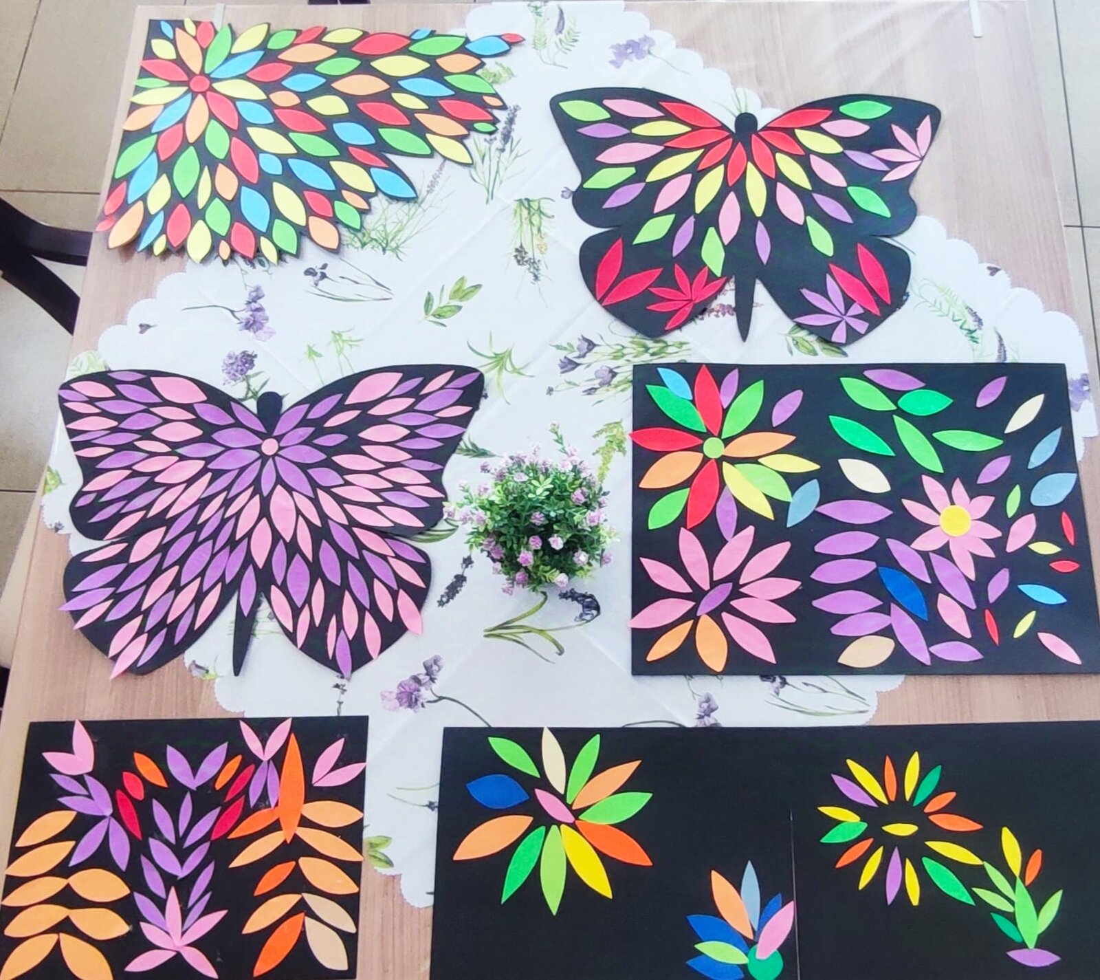 Spousta krásných výtvorů vznikla v naší výtvarné dílně. Pracovali jsme s malými kousky barevného papíru, kdy jsme sledovali kontrasty barev a procvičovali si jemnou motoriku. Účast byla veliká a nálada výborná. Ostatně jako vždy jsme si užili nejen vyrábění, ale i spoustu legrace. Všem moc děkujeme a těšíme se na příště!😊