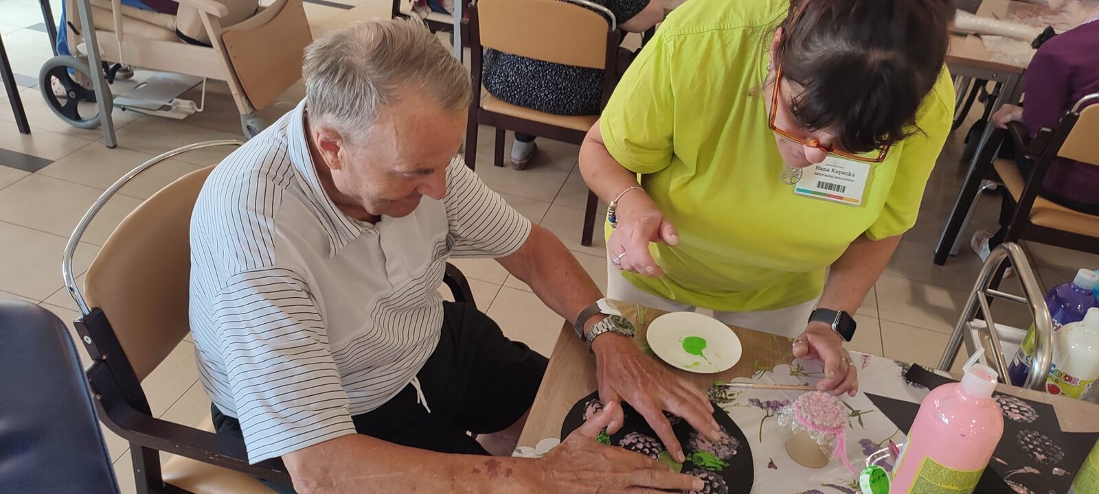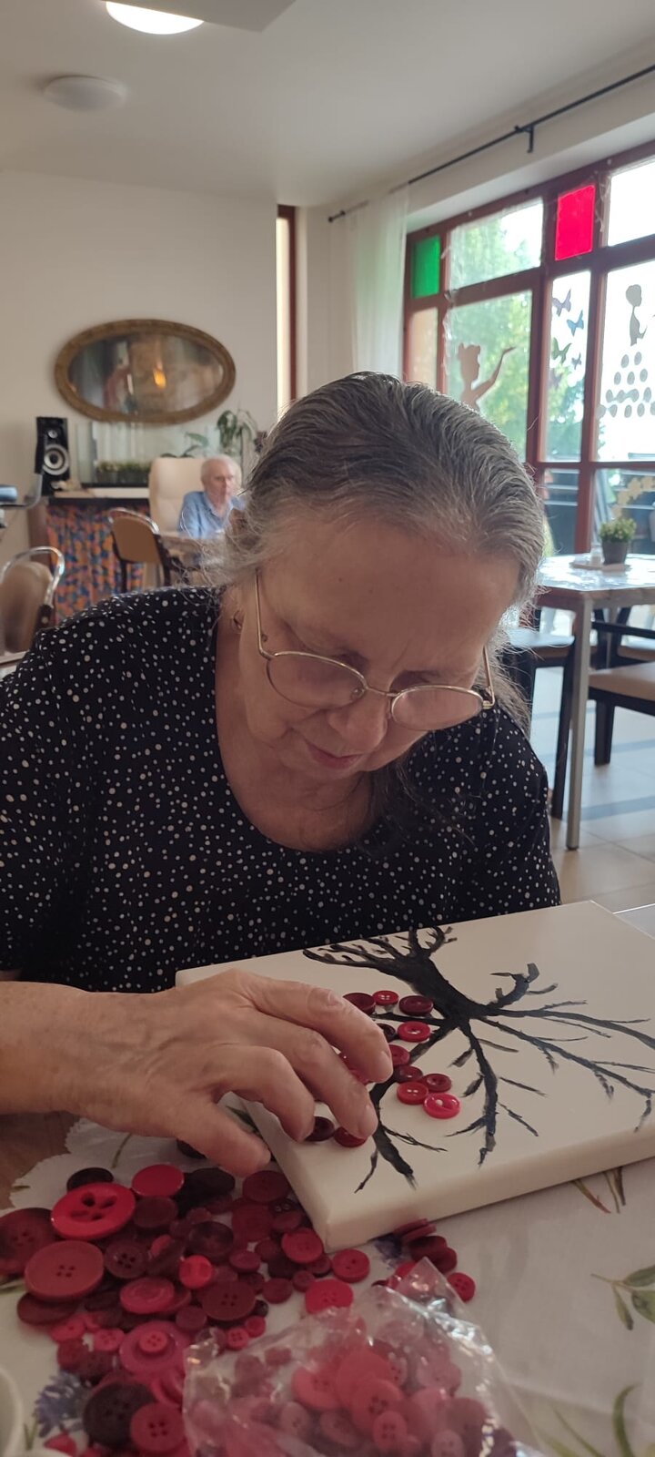 V rámci výtvarné dílny v Senevida Sychrov jsme si vyzkoušeli techniku tisku. Pomocí bublinkové fólie a barev jsme tiskli hortenzie. Klienti dále malovali na plátno siluety stromů, které následně dotvořili pomocí knoflíků.😊🌸