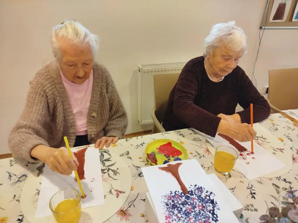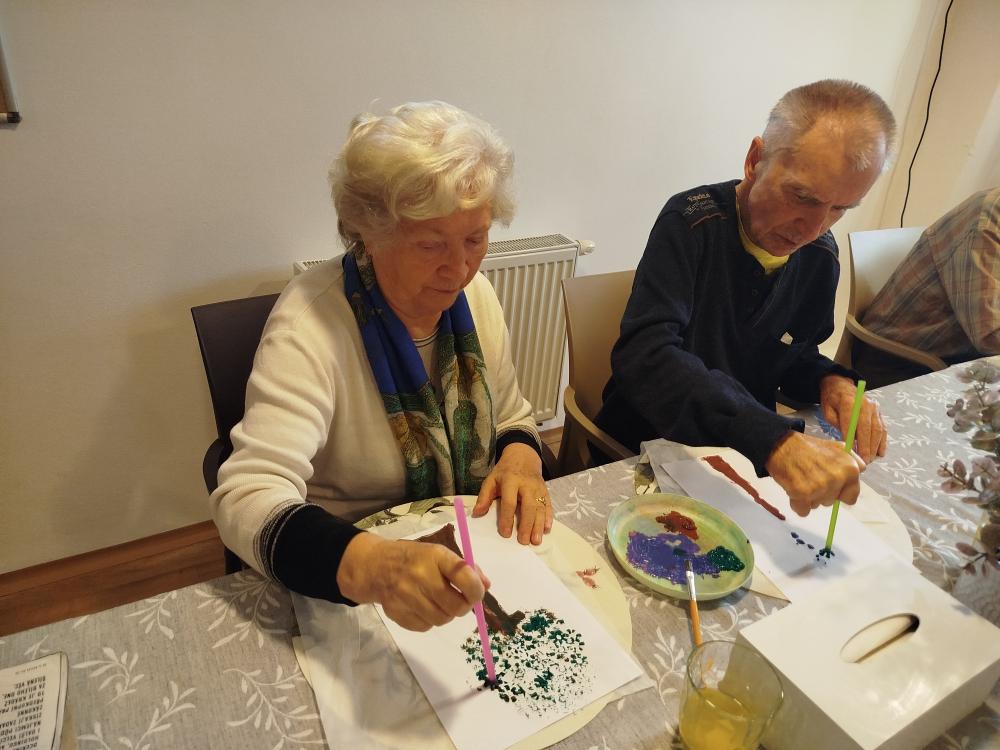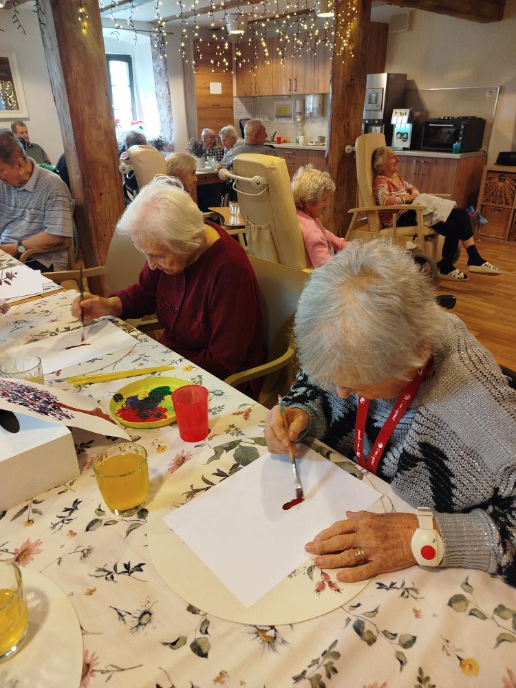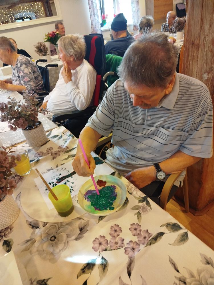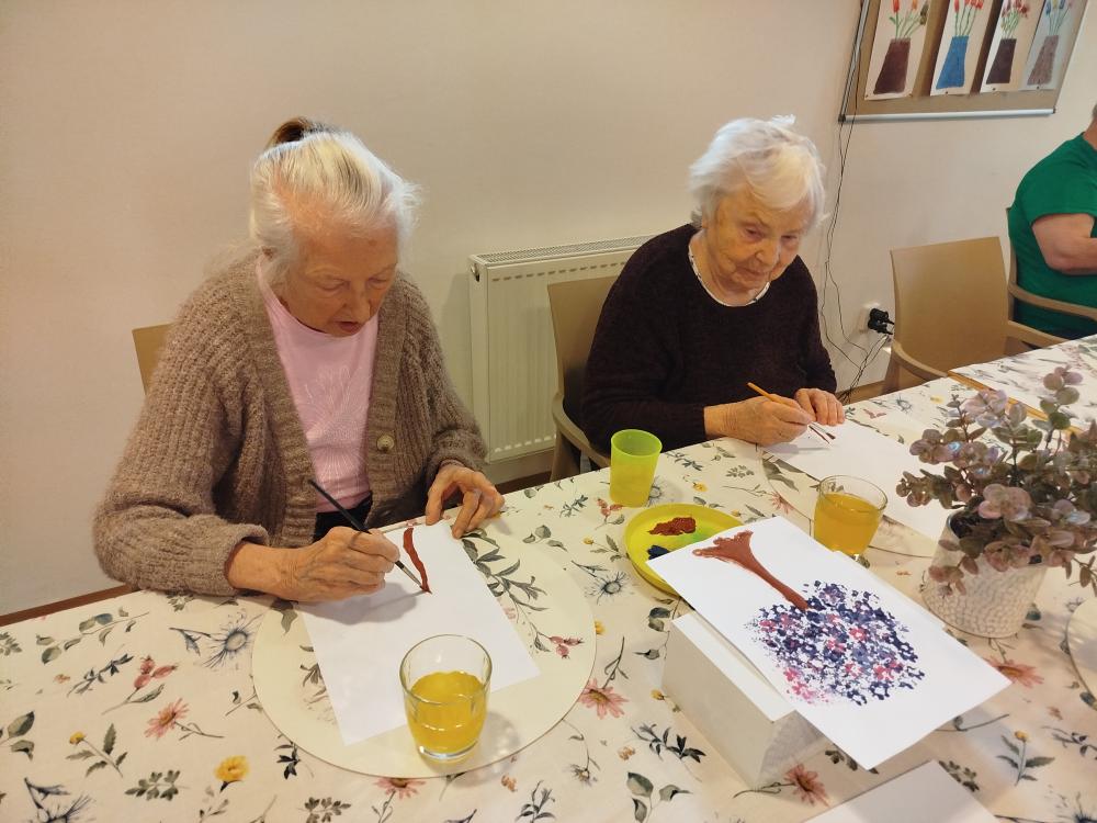 S klienty jsme si ozdobili jídelnu rozkvetlými stromu. Tvořili jsme technikou za pomocí brčka.