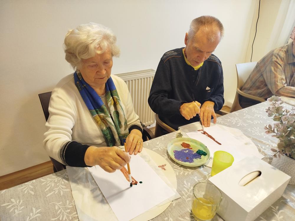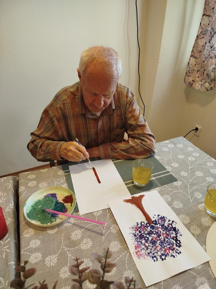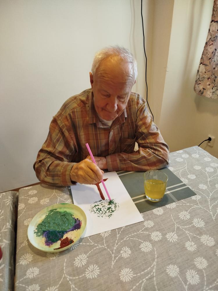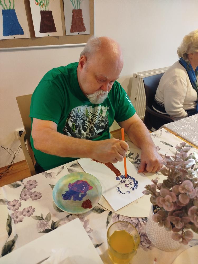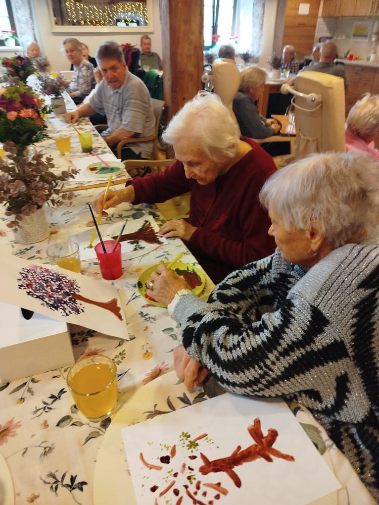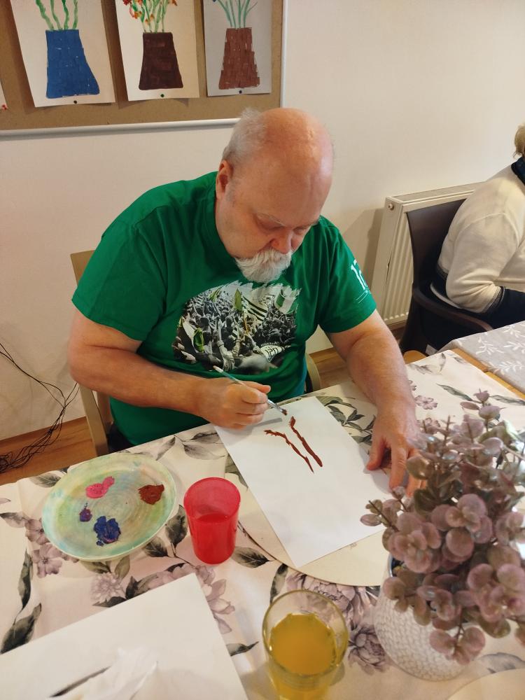 S klienty jsme si ozdobili jídelnu rozkvetlými stromu. Tvořili jsme technikou za pomocí brčka.