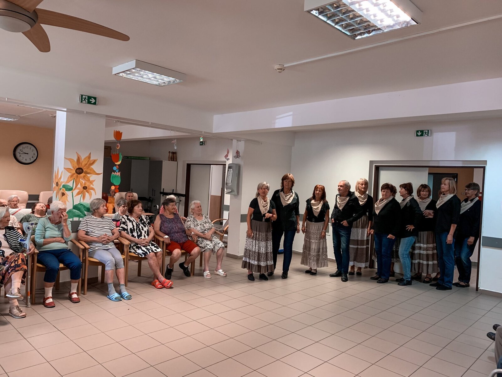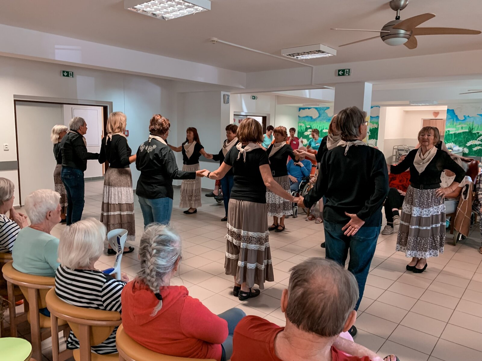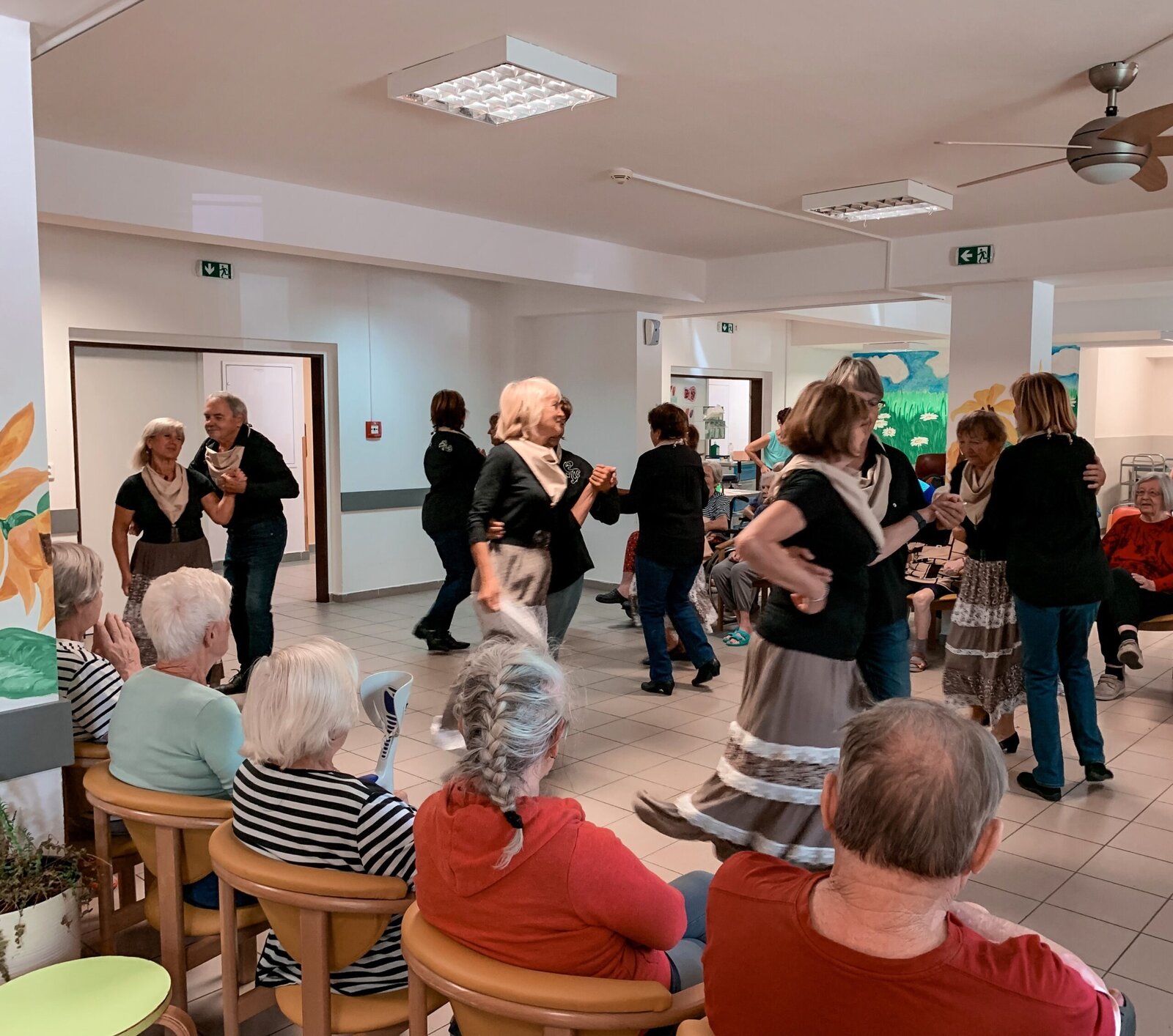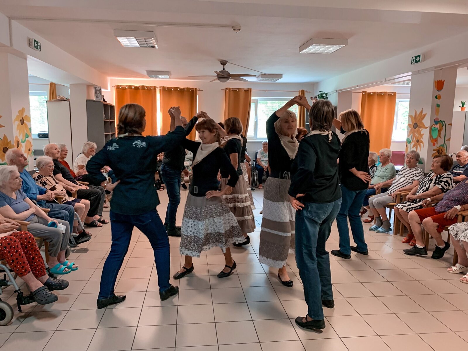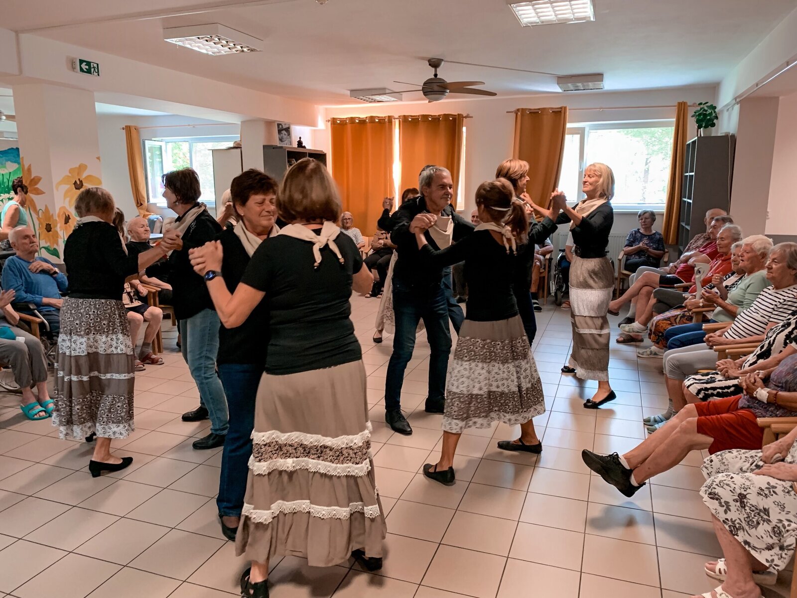 Včera jsme si zatančili v rytmu dechovky, dnes tu máme pro změnu country. A rovnou nám přišli zatančit zkušení senioři z klubu Aktiv, kteří u nás nejsou žádnými nováčky. Do našeho Domova již zavítali několikrát a my je vždy rádi vidíme. O to víc, že se nemusíme jen kochat, ale můžeme se k nim přidat v rámci taneční lekce na konci vystoupení.