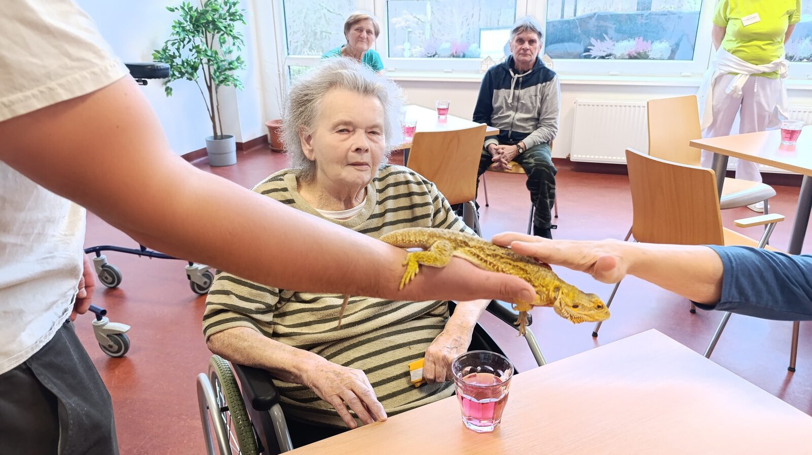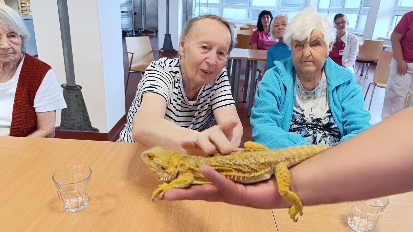 Do Senevida Nepomuk přijel i pan Petr Moulis se záchrannou stanicí. Klienti si mohli pohladit hada a agamu, prohlédnout sovu. 🪱👏😻