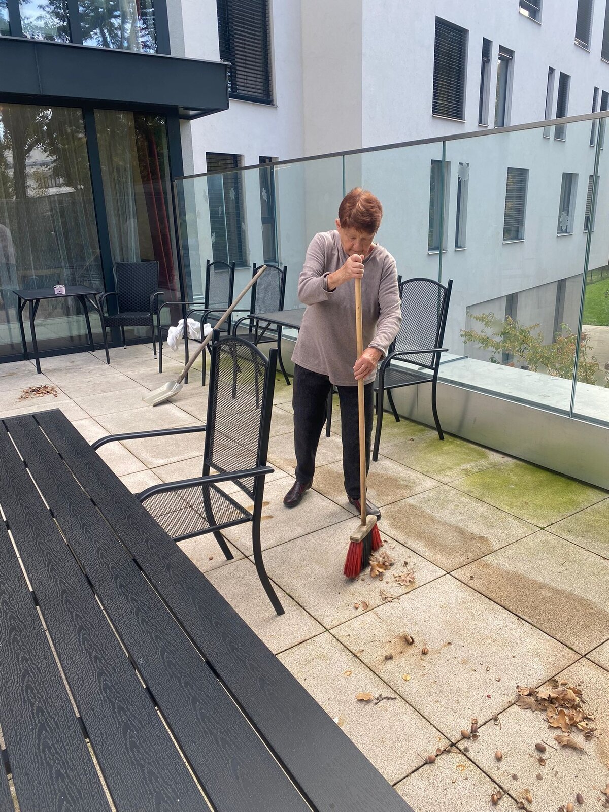 V Senevida Pardubice nás počasí stále neodradilo a snažíme se společnými silami udržovat naší terasu a zahradu. Tyto prostory využíváme na popovídání, zahradní práce, procházky a podobně ☀️.