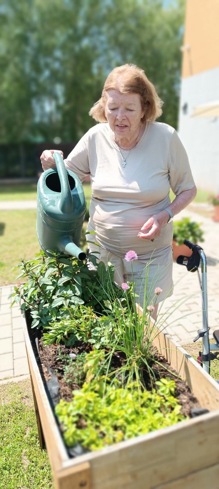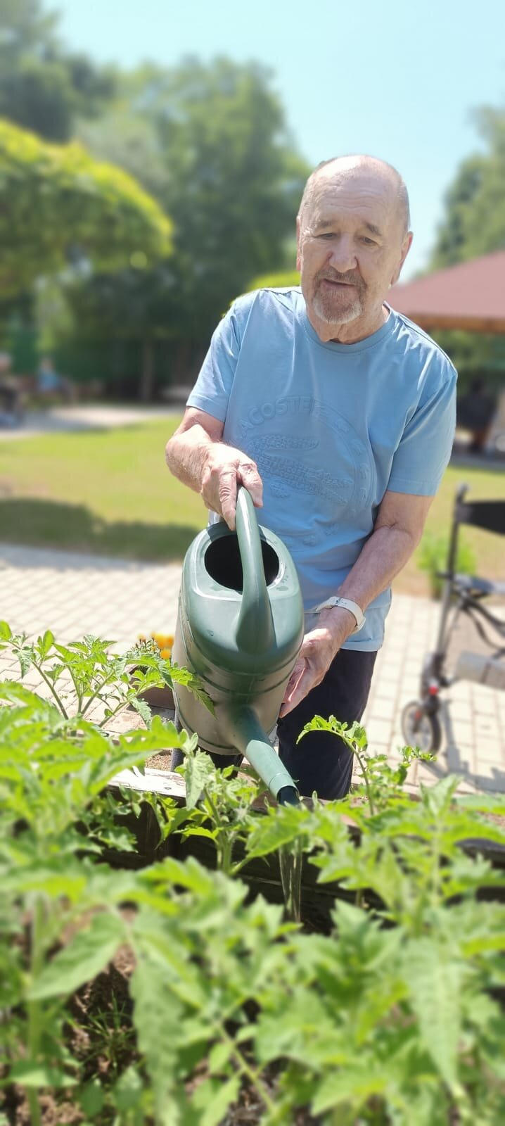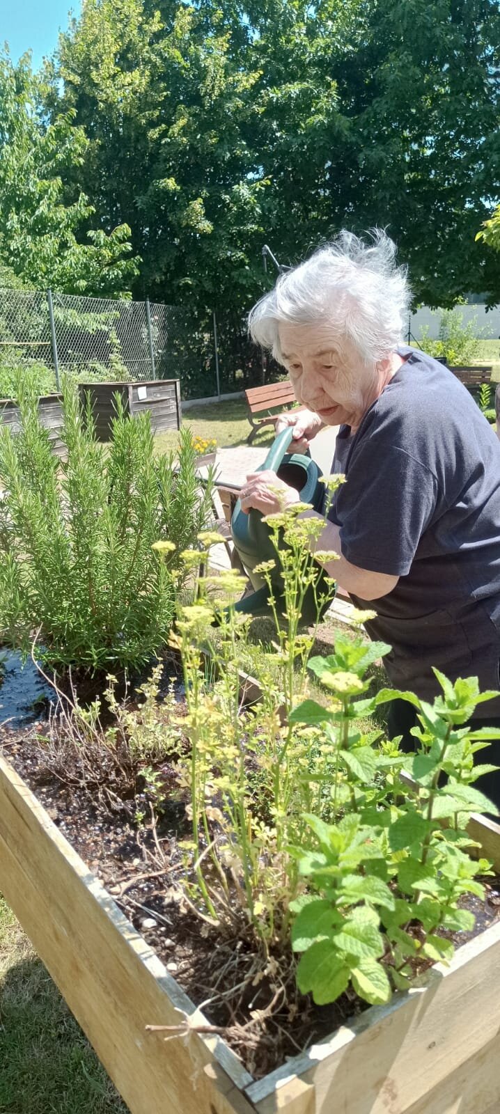 Dva krát do týdne se v ALZEIMER HOME Modřany věnujeme naší zahradě. Říkáme tomu zelená terapie. Pěstování bylinek a zeleniny se zkušenými zahradníky.