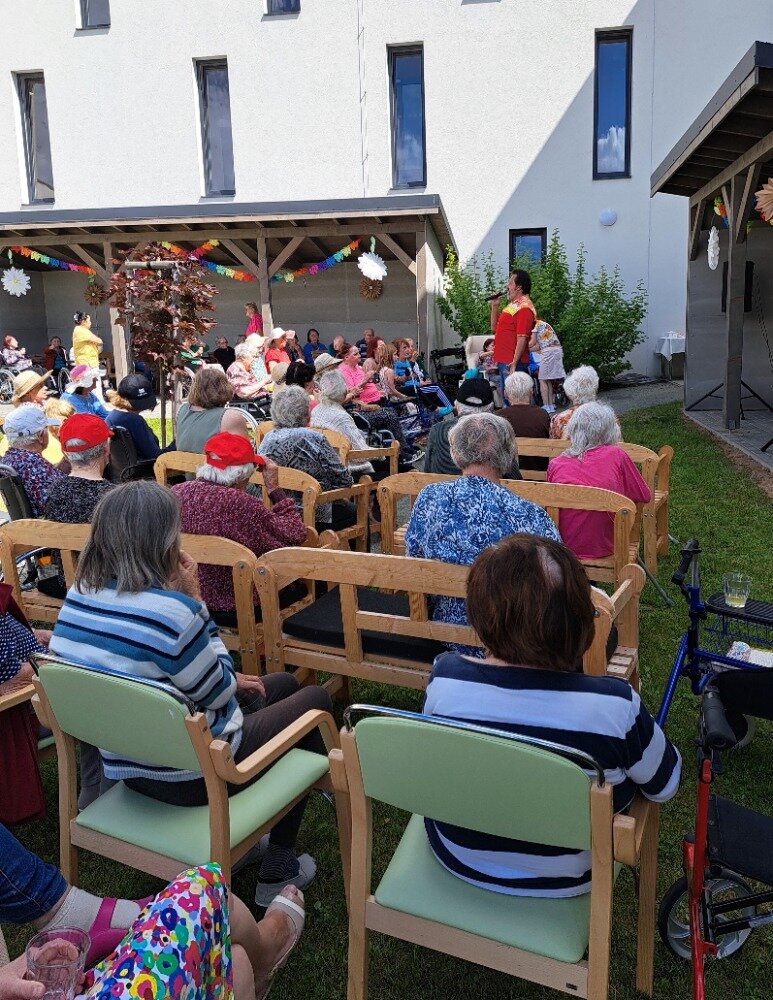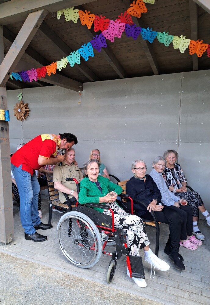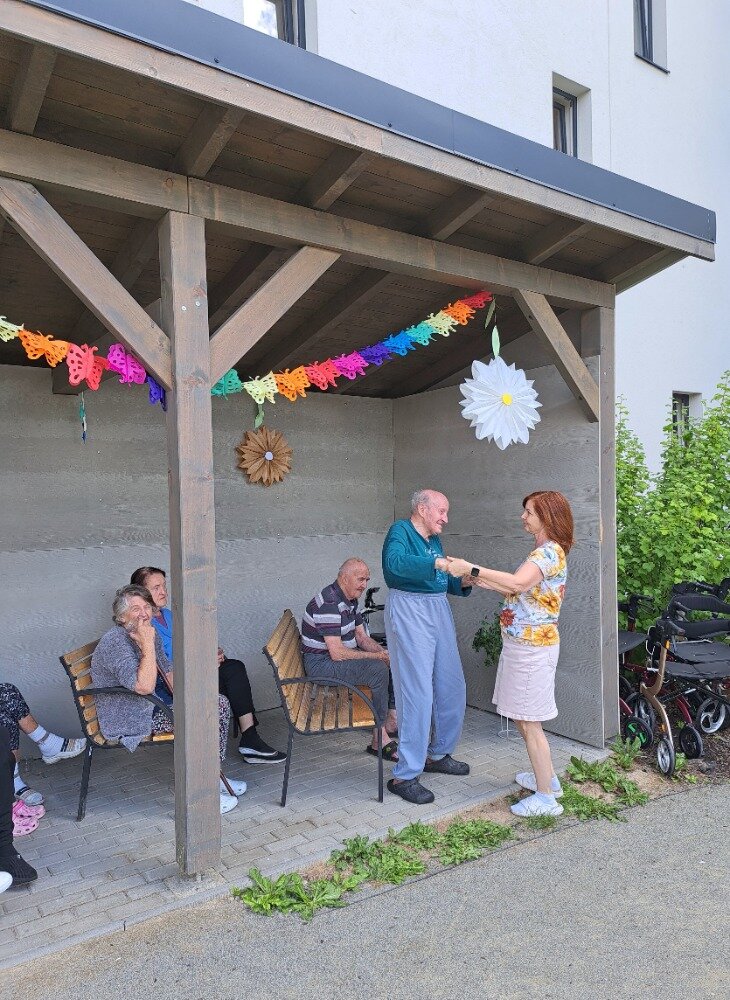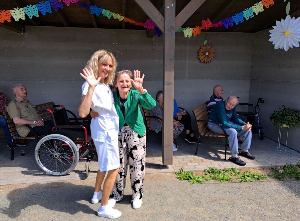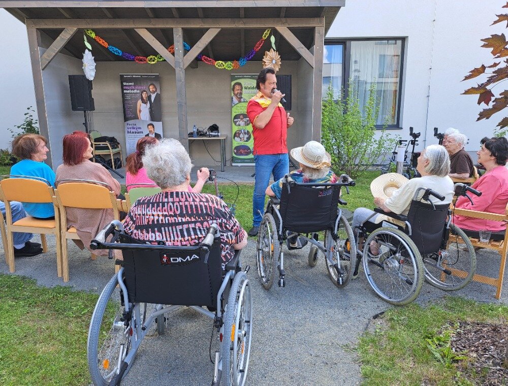 Léto jsme přivítali ve velkém stylu – příjemným venkovním posezením s hudbou, které se konalo v areálu našeho Senevida Boskovice a bylo určeno nejen pro naše milé klienty, ale i pro jejich rodiny. Na výzdobě zahrady a přípravě pohoštění se aktivně podíleli naši klienti s aktivizačními pracovnicemi. O hudební doprovod se postaral pan Jaromír Adamec, který vystupuje jako Waldemar Matuška.