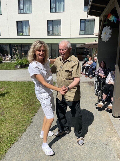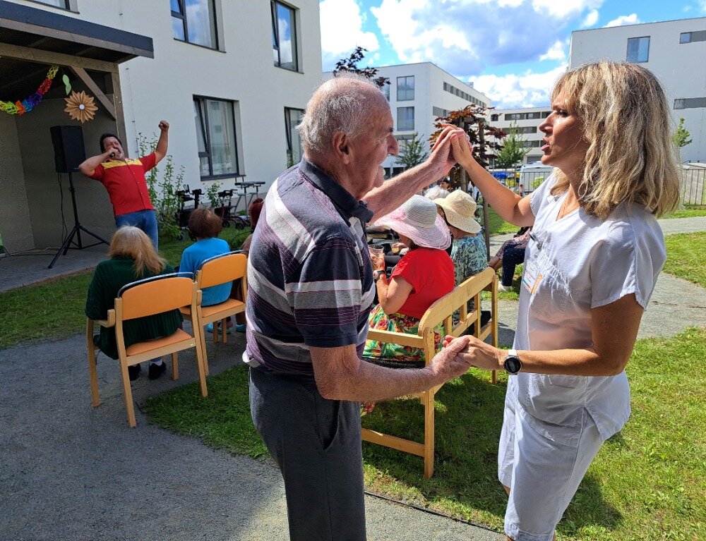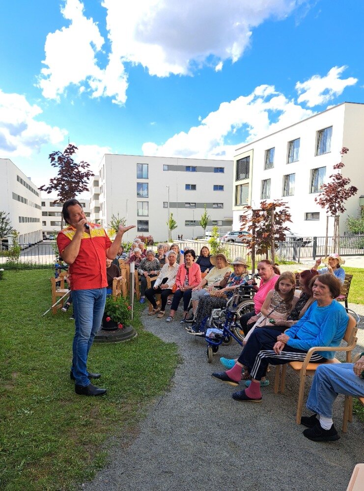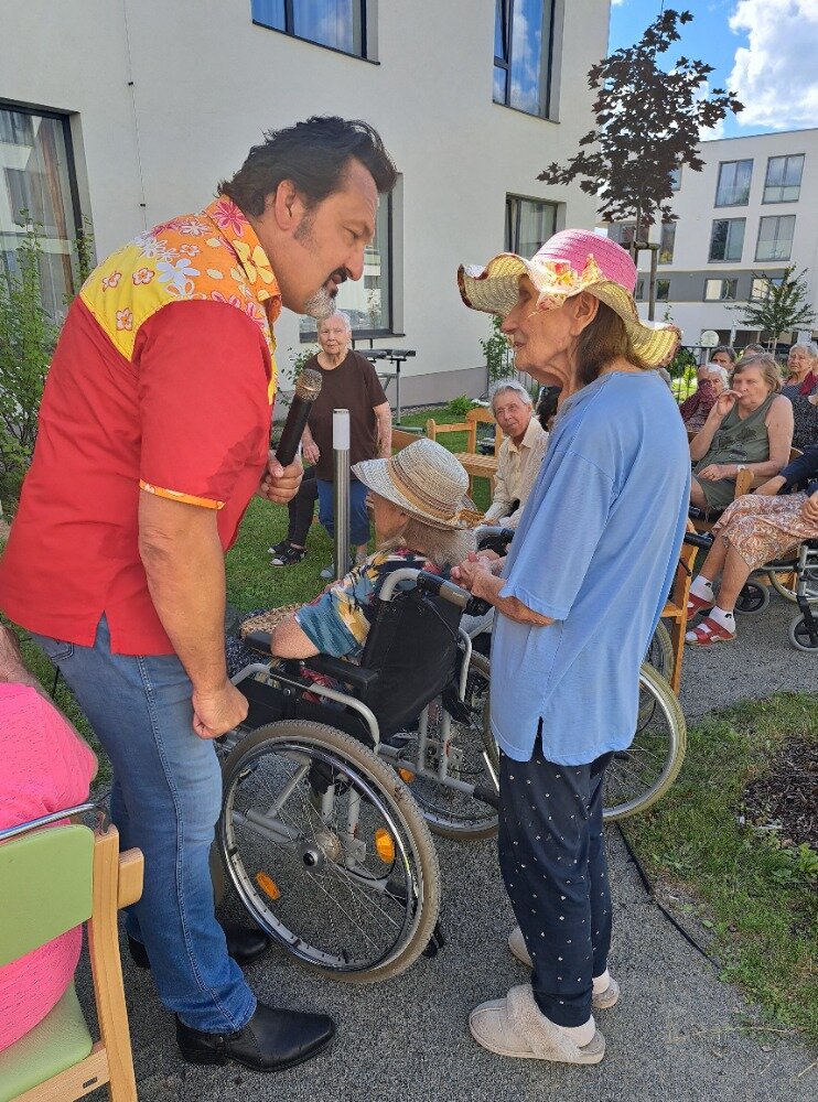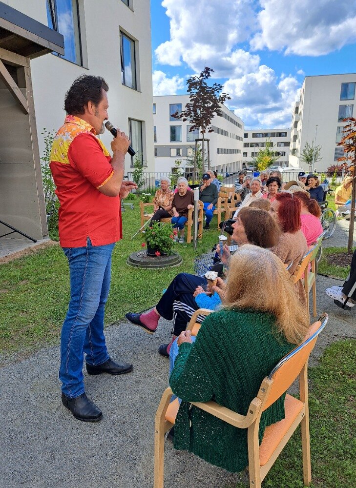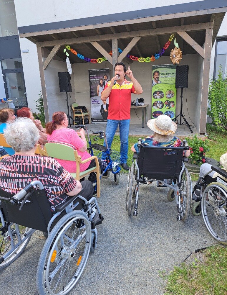 Léto jsme přivítali ve velkém stylu – příjemným venkovním posezením s hudbou, které se konalo v areálu našeho Senevida Boskovice a bylo určeno nejen pro naše milé klienty, ale i pro jejich rodiny. Na výzdobě zahrady a přípravě pohoštění se aktivně podíleli naši klienti s aktivizačními pracovnicemi. O hudební doprovod se postaral pan Jaromír Adamec, který vystupuje jako Waldemar Matuška.