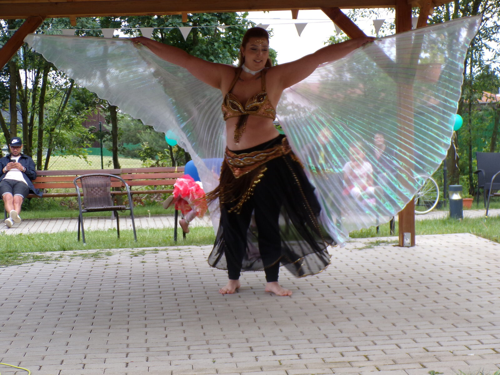 Naše oblíbené staropražské písničky k nám dovezli trio PEPA pod vedením muzikanta Roberta Papouška. Už poněkolikáté nám přišli předvést své vystoupení Rebelky z KC 12. Na závěr programu nám zatančila orientální tanečnice Dominika. Děkujeme všem, kteří se na této akci podíleli a přišli.