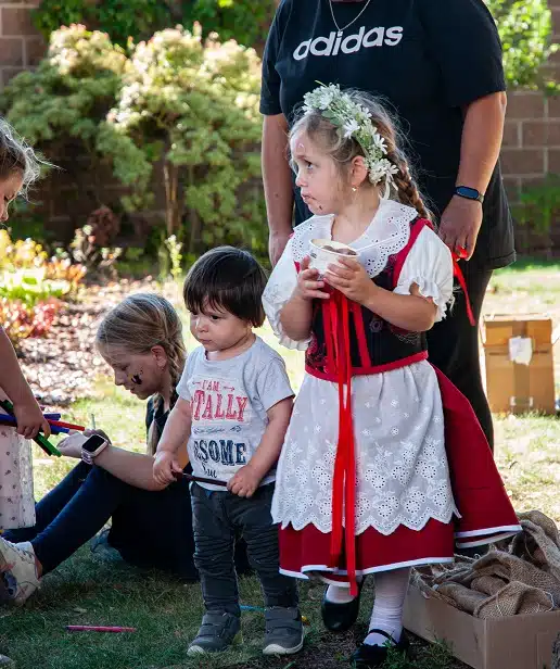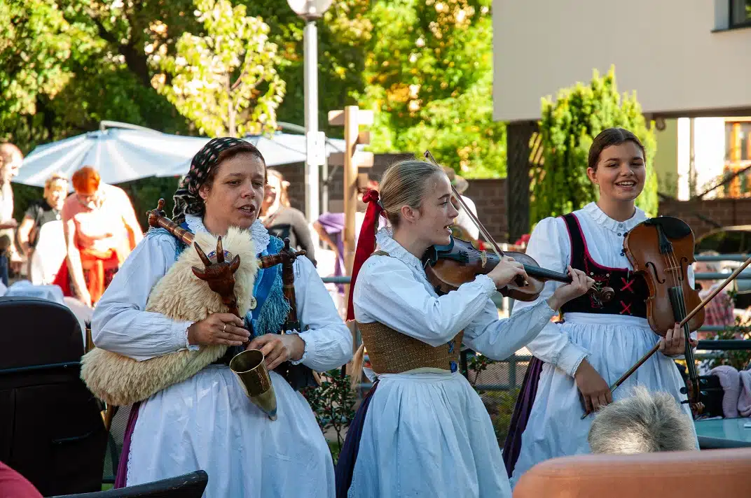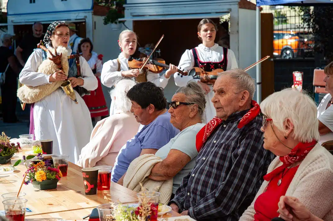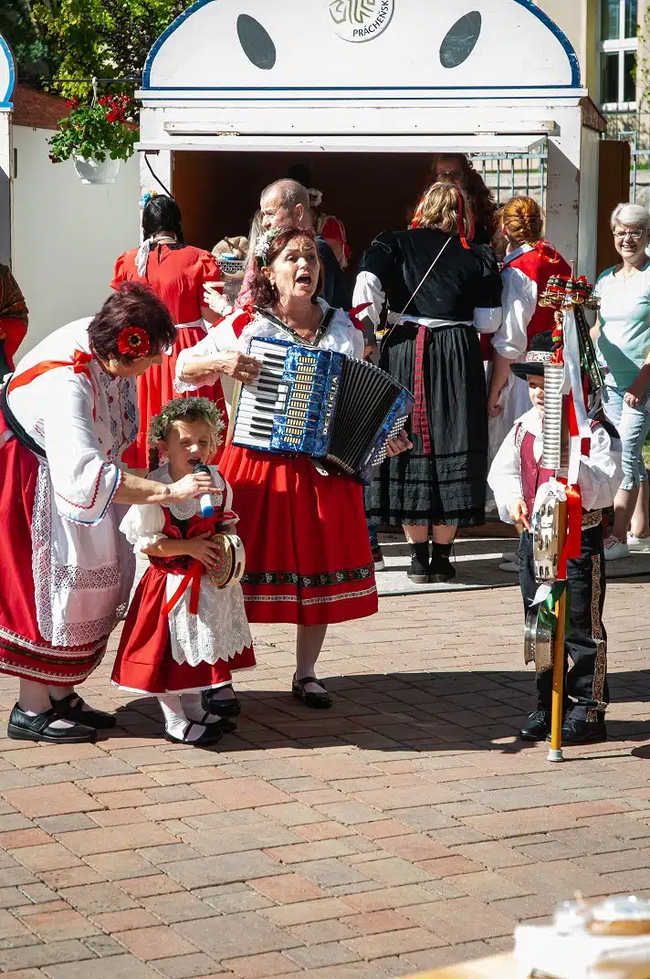 Celé odpoledne se neslo v duchu jihočeské vesnice, nechyběly vesnická dekorace, u kterých se všichni návštěvníci mohli se svými blízkými vyfotografovat. V dětském koutku se malovalo na obličej, hrál se kroket nebo si děti vyrobily klasickou točící se káču. Velkým a moc milým překvapením byl i zvířecí koutek se slepičkami, kohoutkem, králíkem a kozlíkem. Kozlík Lubošek i slepička Dáda obešli všechny klienty, aby se každý mohl potěšit jejich přítomností.
