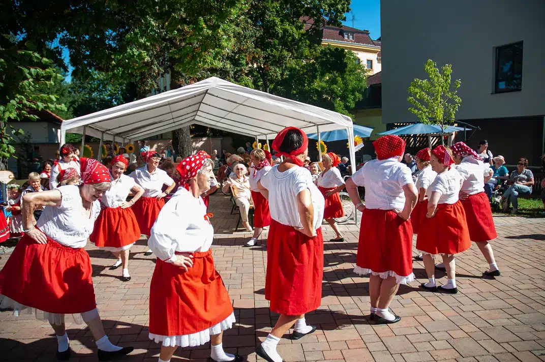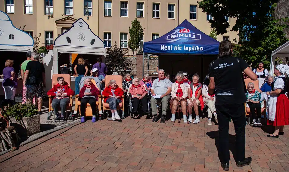 Ve čtvrtek 18. září 2025 jsme si užili krásné slunečné odpoledne v atmosféře pravé jihočeské vesnice – to bylo téma naší Zahradní slavnosti 2025. Na přípravě se podíleli z velké části naši klienti, kteří tvořili kulisy ve tvaru jihočeských domků i krásných rozkvetlých slunečnic. Dobrovolníci z obce Žďár u Protivína nám pomohli postavit dřevěné domky zapůjčené z MAS Strakonicko, ze kterých náš kuchařský team podával občerstvení všem zúčastněným.