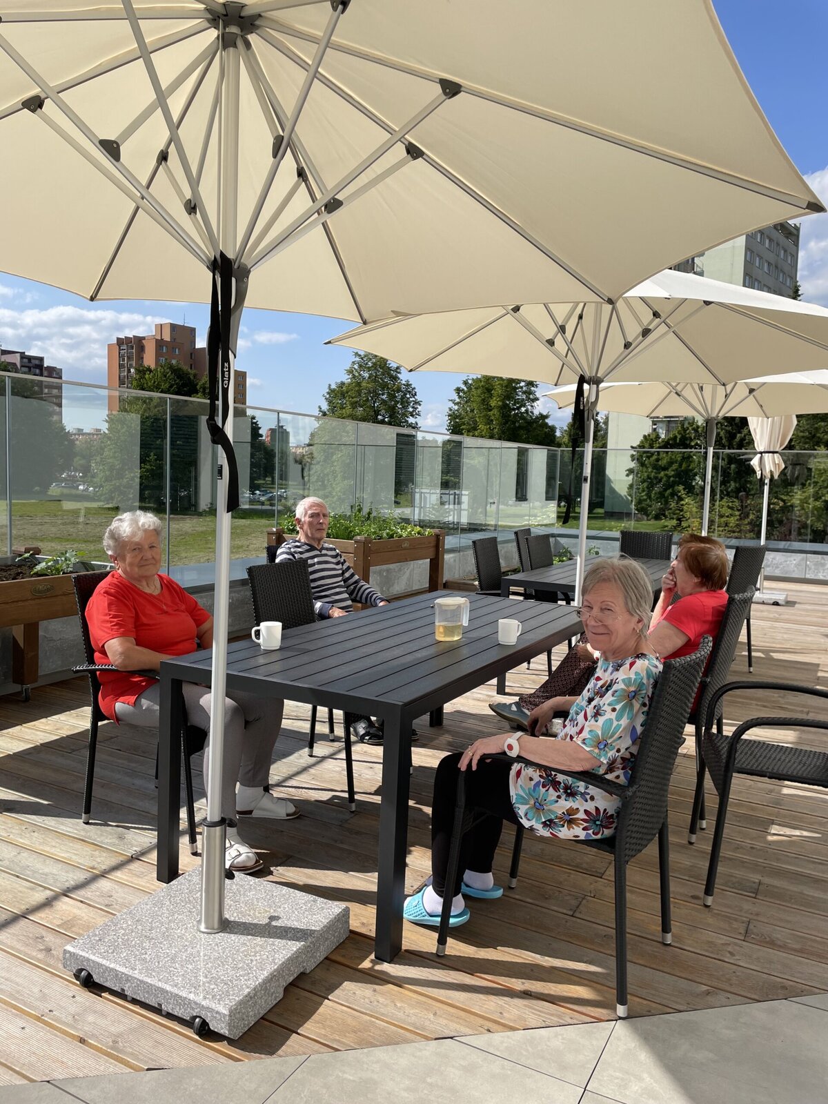 Naše terasa ožila nejen zelení, ale i smíchem, oblíbenými písničkami a příběhy z minulosti.