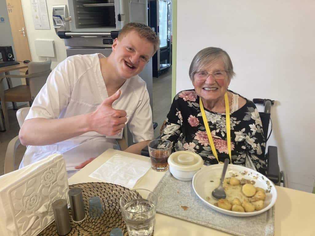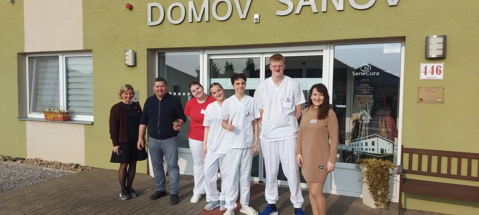 Díky velmi dobré spolupráci se Střední odbornou školou Znojmo (SOU a SOŠ SČMSD Znojmo, s.r.o. Přímětická, Znojmo) jsme i letos měli možnost v našem domově přivítat tři studenty z Norska, kteří zde byli na výměnné praxi. Slečna Nora a dva pánové Zeid a Sigurd se zapojili do skupinových i individuálních aktivit, zajistili dopomoc při stravování, doprovod při vycházkách do zahrady apod.
