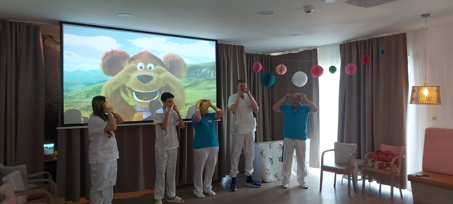 Zahraniční studenti si připravili pro naše aktivizační činnosti prezentaci, ve které představili svou zemi, tradiční jídla, kroje, sporty, královskou rodinu a v neposlední řadě sebe a svou školu. Příjemné povídání bylo doplněno o dotazy klientů. Z odpovědí jsme se dozvěděli například to, jak se v jejich zemi slaví tradiční svátky, jako jsou např. Vánoce. Naučili jsme se i jednu norskou dětskou písničku a na oplátku je naši klienti učili české lidové písně.