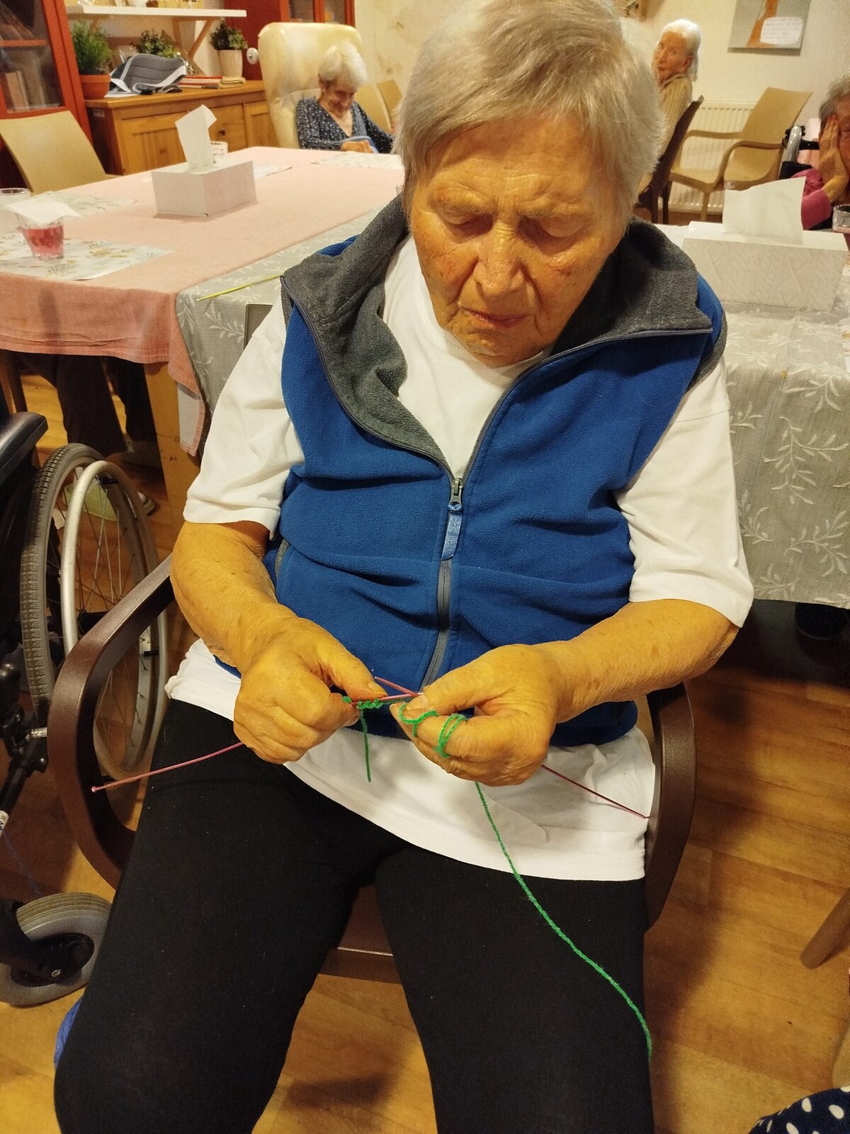 V Senevida Pyšely jsme si zpříjemnili čas základem pletení. Někteří si hned vzpomněli, jak rádi pletli. U některých jsme činnost zopakovali. Byl to moc hezky strávený čas