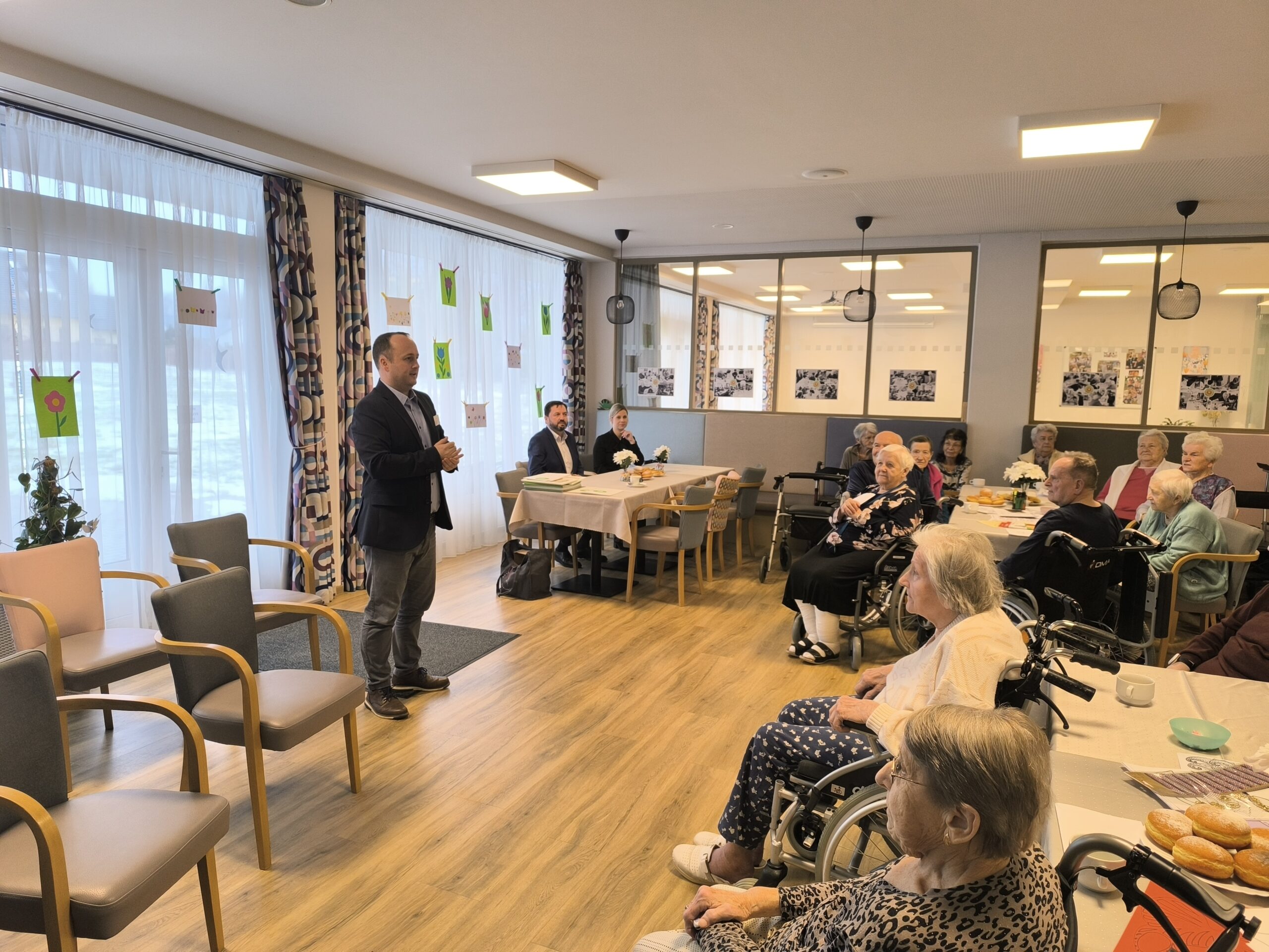 Jiří Dvořák. Děti a senioři měli v tento slavnostní den připravené hudební vystoupení a poté se společně věnovali masopustnímu vyrábění. Slavnostní akci navštívil také místostarosta města Humpolec pan Martin Hendrych, koordinátorka sociálních služeb paní Marcela Kopicová, DiS, zřizovatelka Questo school paní Helena Kottová, ředitelka Questo school paní Lucie Kroupová Maršíková a koordinátorka Programu Povídej paní Petra Ketnerová a paní Jitka Nevrzalová.