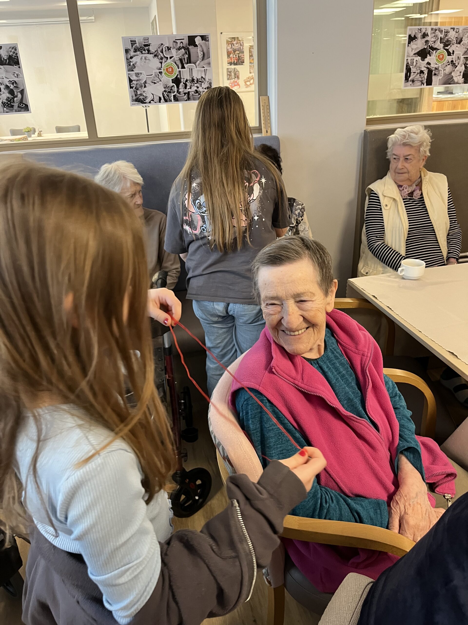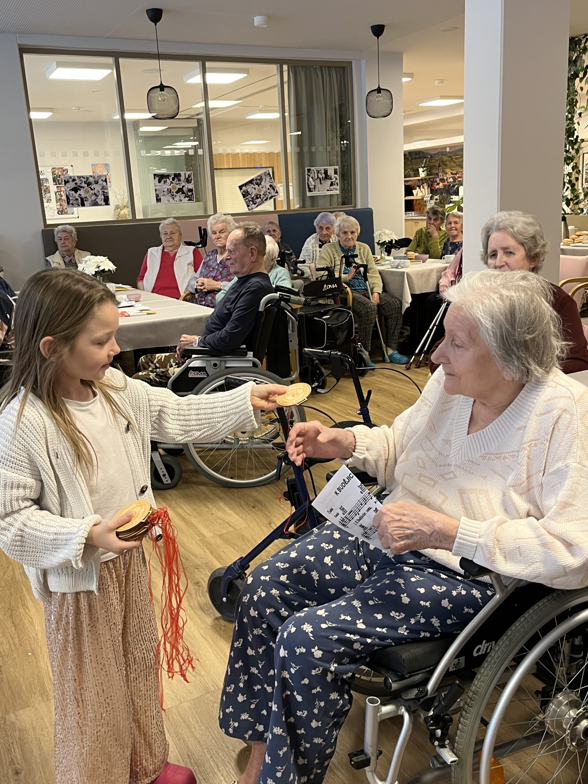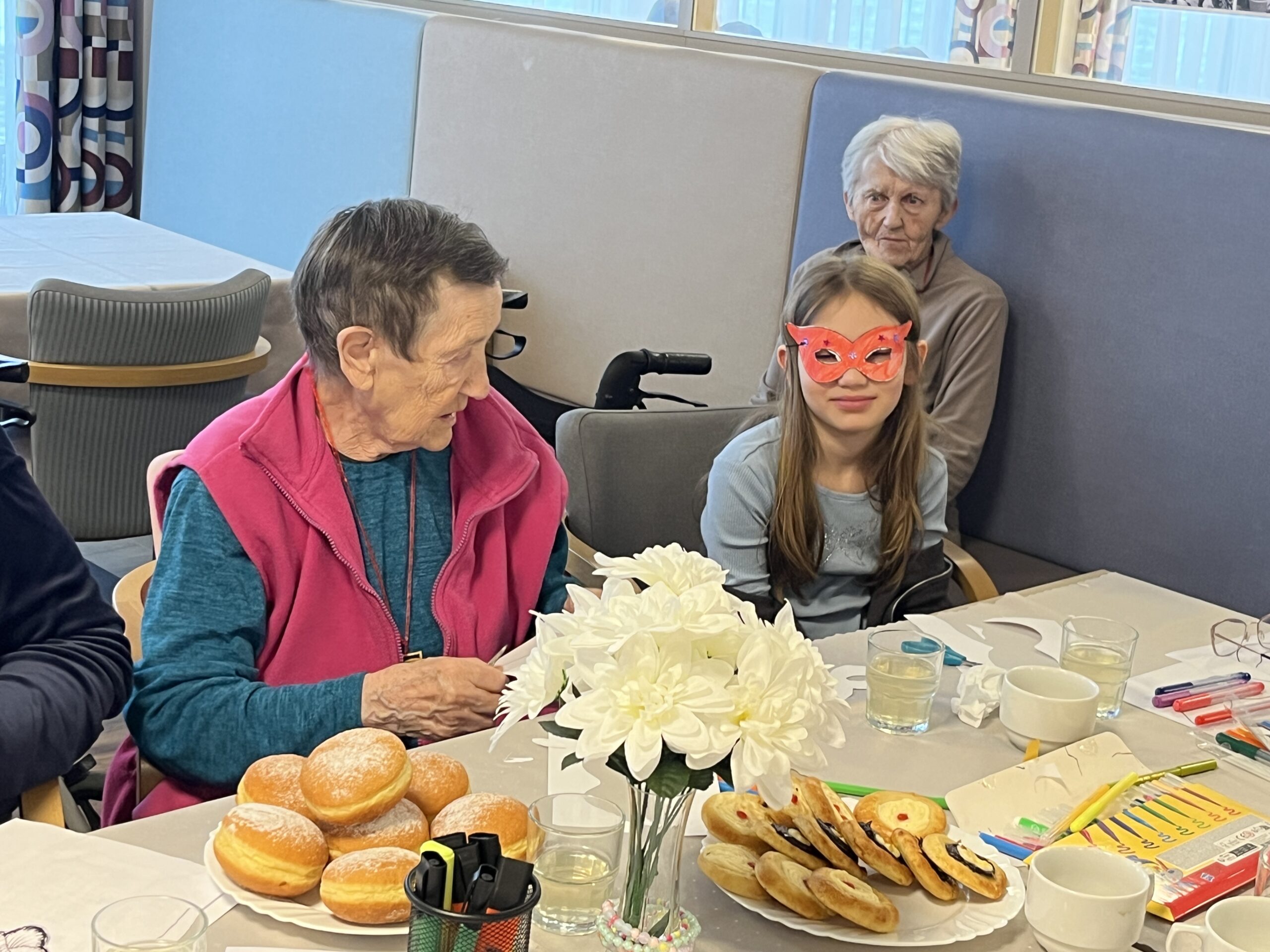 Naše zařízení již úspěšně dlouhodobě spolupracuje s Questo school Humpolec, a proto jsme se společně rozhodli zapojit se do programu „Povídej“. Společně se snažíme o propojování obou generací a sdílení těchto dvou světů. Děti a senioři se v programu „Povídej“ věnují různorodému tvoření, povídání, zpívání, čtení a dalším společným aktivitám. Minimálně jednou v měsíci děti navštěvují naše klienty a vzájemně tak sdílí svou radost. Pro naše klienty mezigenerační setkávání představuje sdílení osobních příběhů, obohacení všedních dnů a také zpestření ve formě navštěvování dětí přímo v jejich školském prostředí. Na společné setkání se naši klienti vždy velmi těší a aktivity s dětmi mají pokaždé úspěch a hojnou účast. Děti nezapomínají ani na naše klienty, kteří se společných aktivit již zúčastnit nemohou, a tak je navštěvují individuálně na pokojích, kde jim předčítají či si společně povídají.