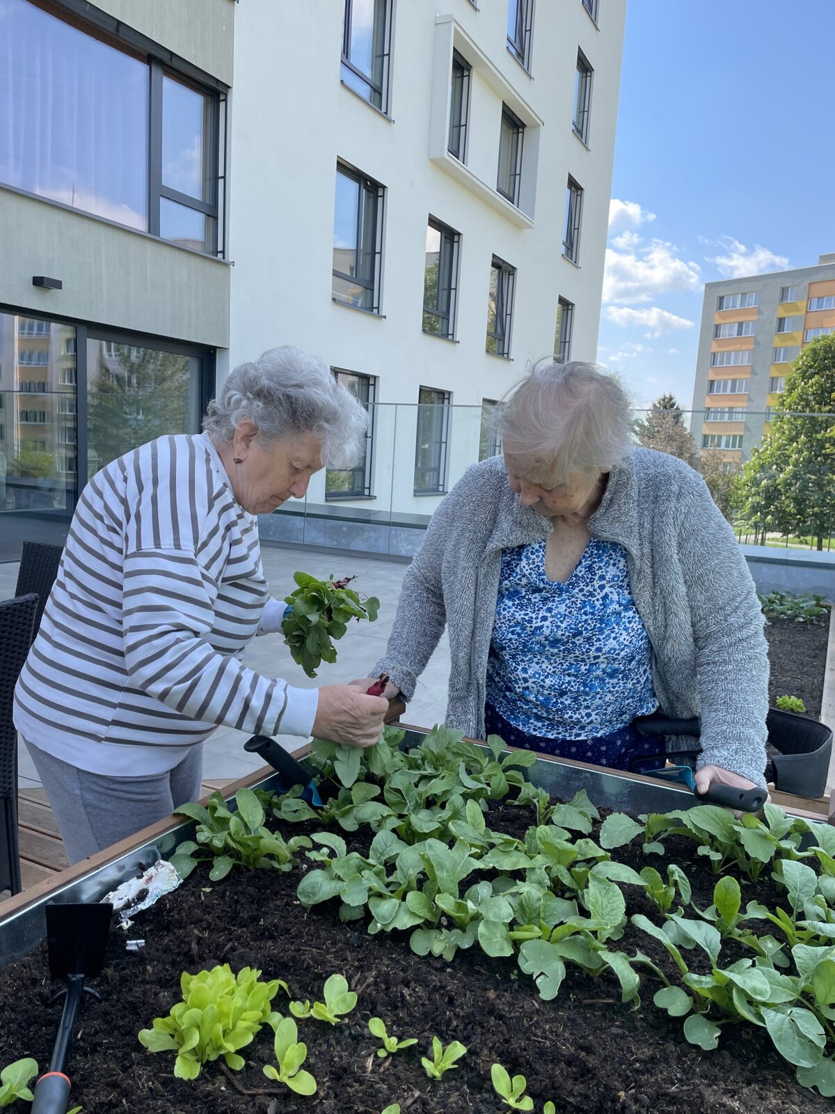 Na naší zahradě v Senevida Ostrava - Poruba to zase ožilo - s klienty jsme přesazovali ředkvičky a saláty, které nám krásně rostou. Společná práce venku přináší nejen radost z úrody, ale také spoustu zdravotních a duševních přínosů. 🏡