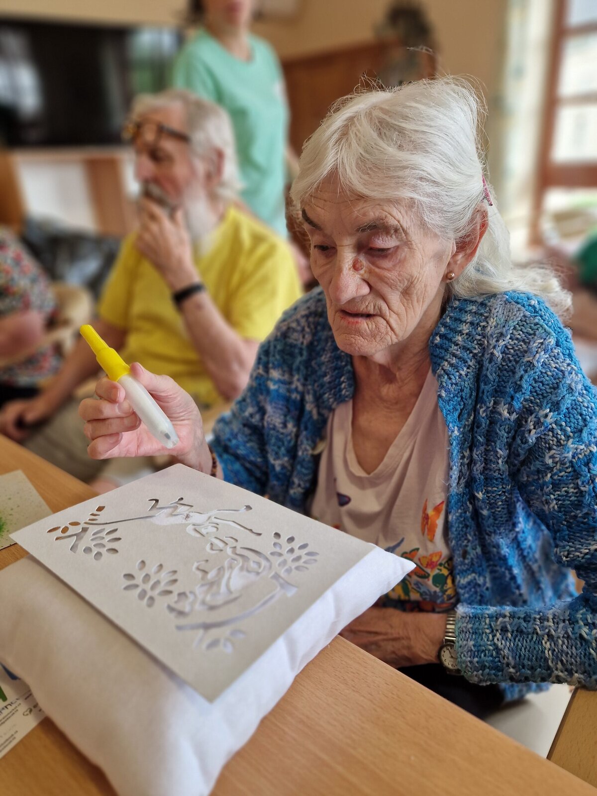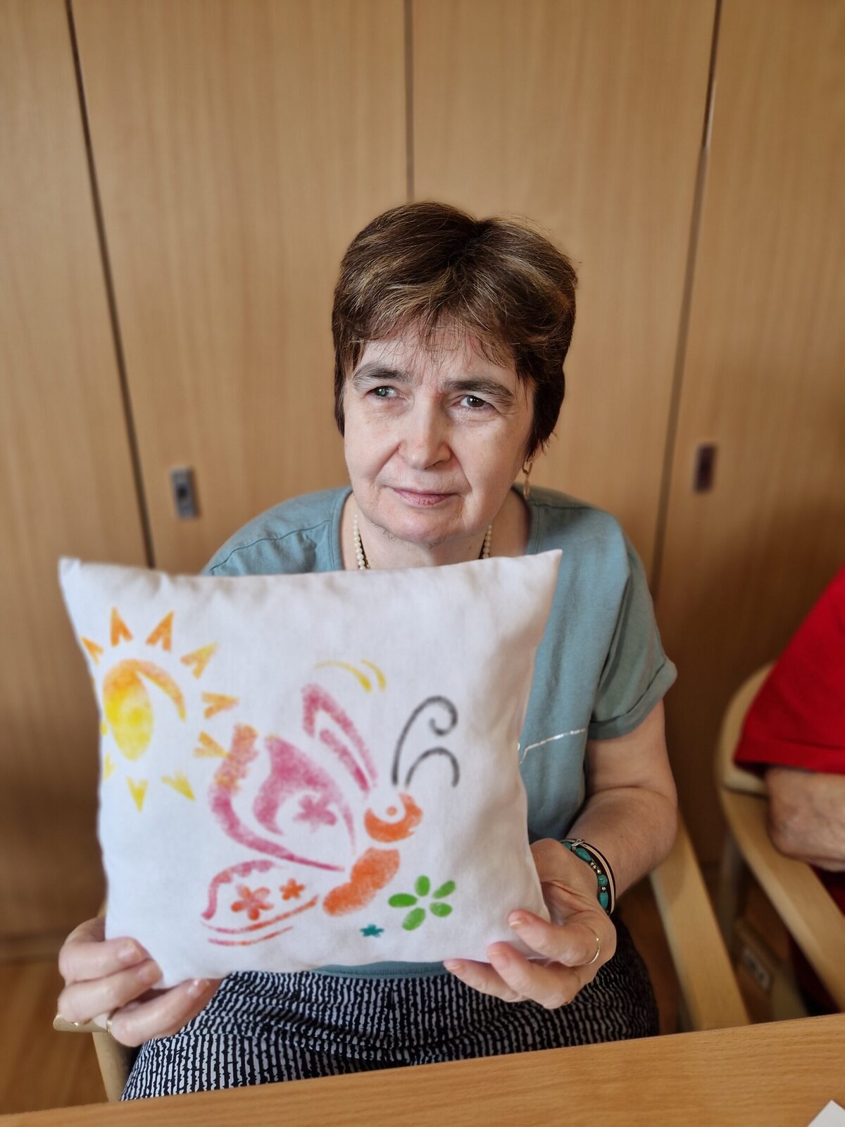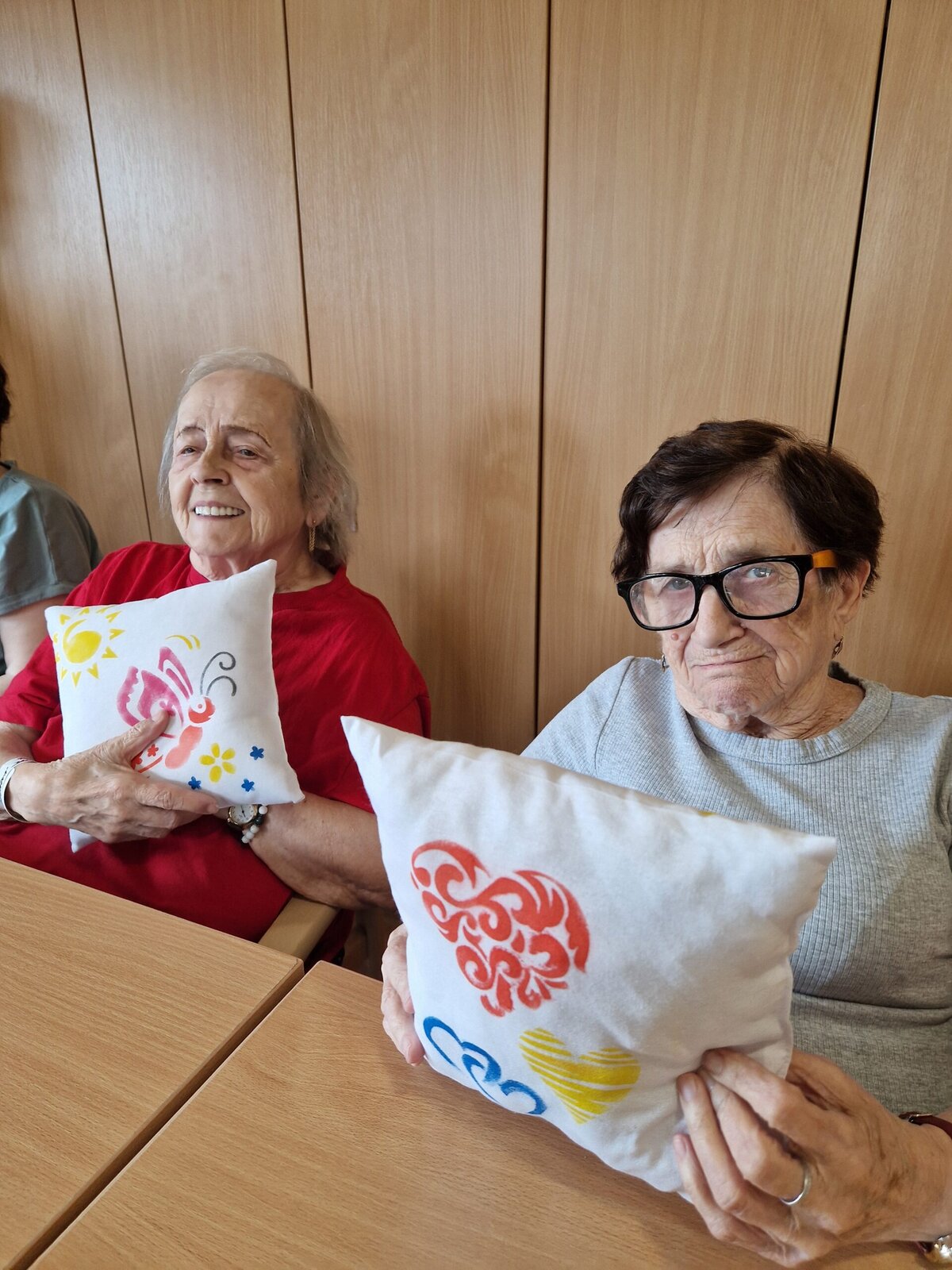 Dnes dopoledne se klienti Senevida Frýdek-Místek pustili s Odpaďáčkem do netradičního tvoření – a výsledek stál za to! 😊 S pomocí šablon a barevných foukacích fixek si originálně ozdobili své polštářky.