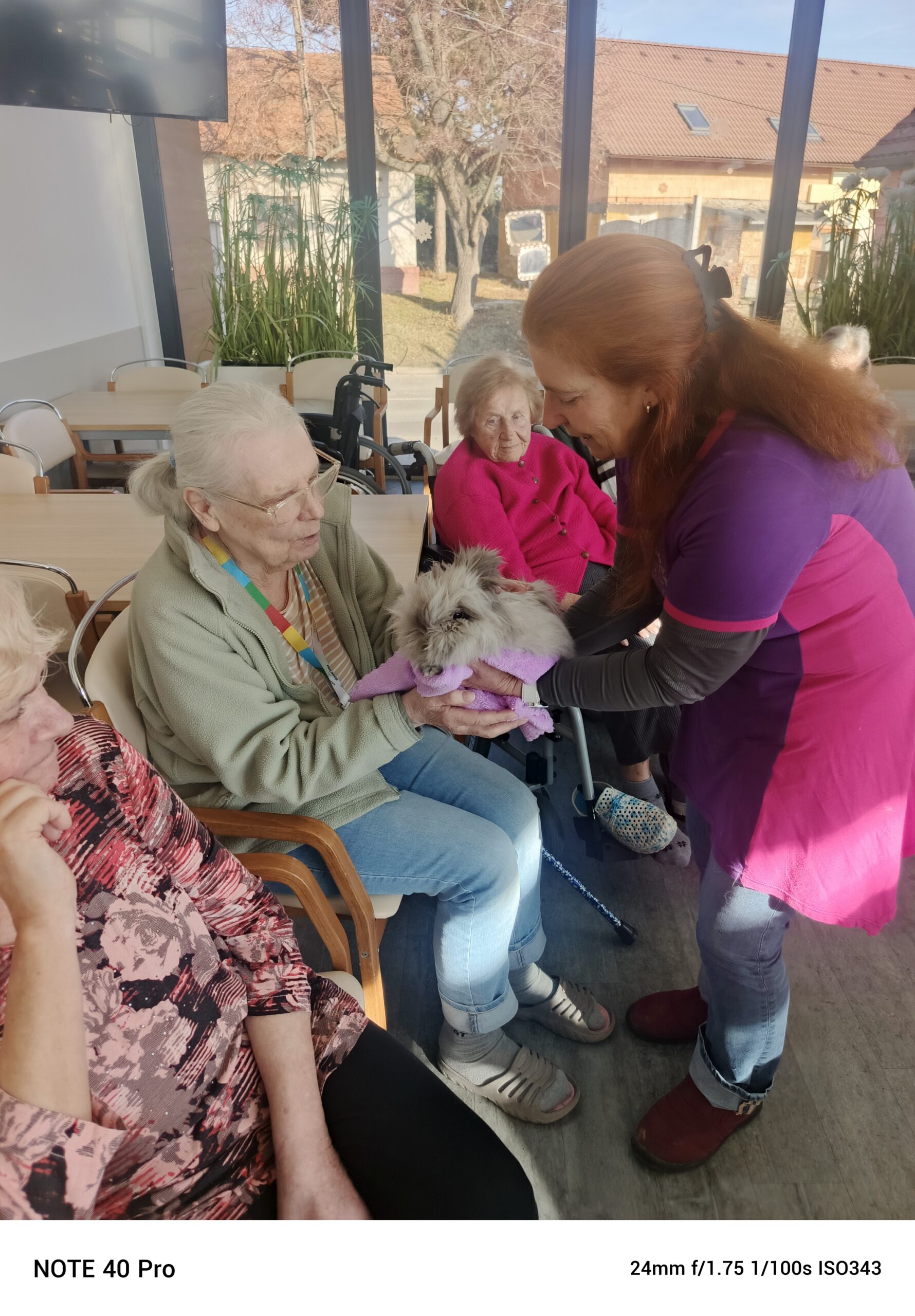 Novým zvířecím hostem v Senevida Pitkovice byl králíček, který si získal velkou pozornost – jeho hebká a dlouhá srst přímo vybízela k pomazlení a pro celou skupinu to byl velmi příjemný smyslový zážitek.