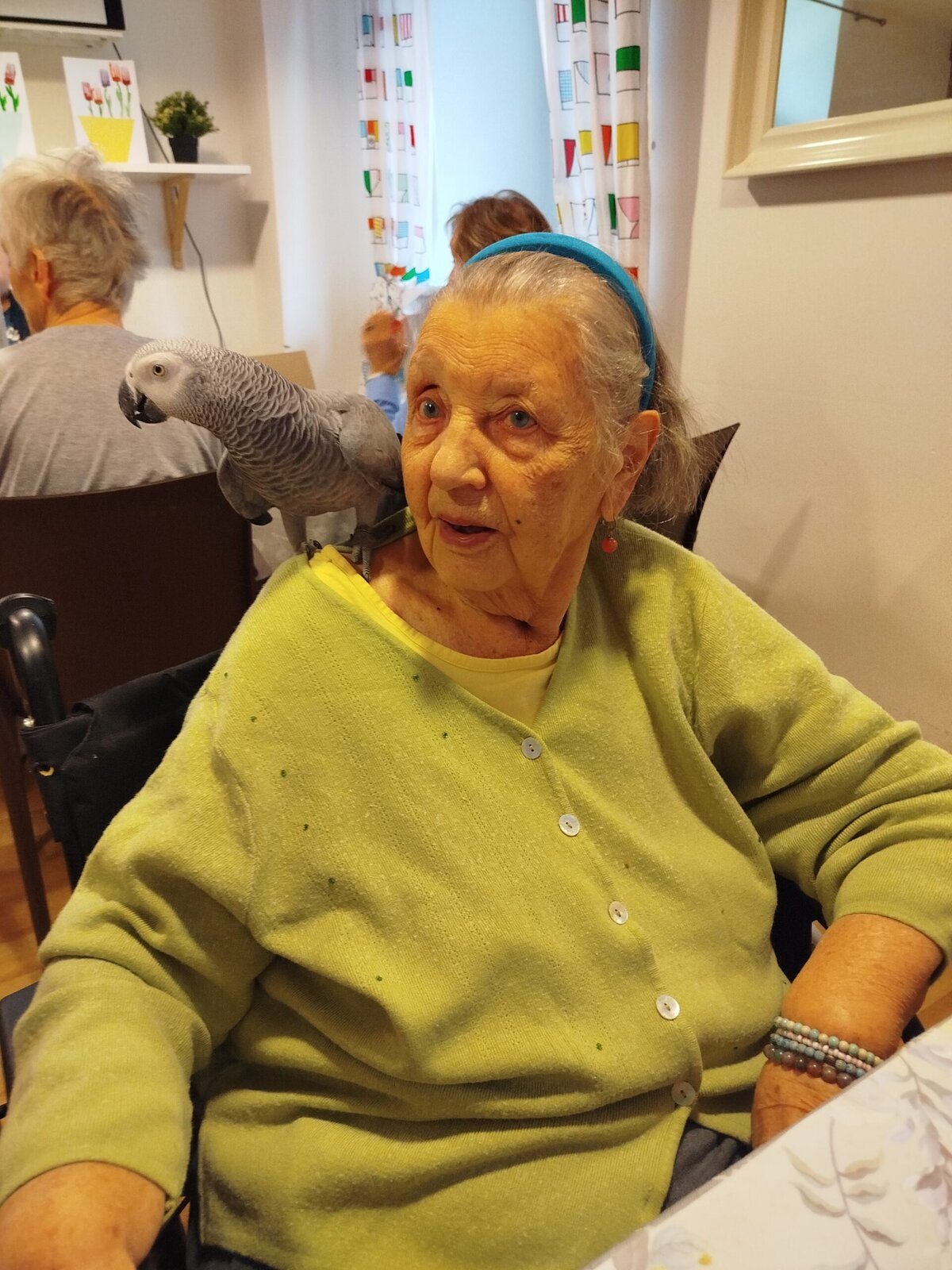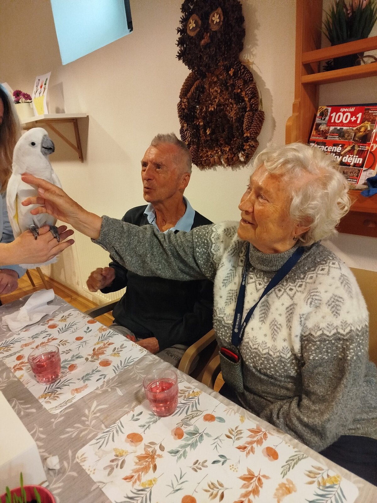 Dnes nás v Senevida Pyšely navštívili dva papoušci. Po tom, co se rozkoukali, lítali po celé místnosti. Občas na někoho přilétli, aby si nás prohlédli zblízka. Mohli jsme si je pohladit a dát jim něco dobrého na zub. Bylo to moc příjemné setkání. Už teď se těšíme na další návštěvu