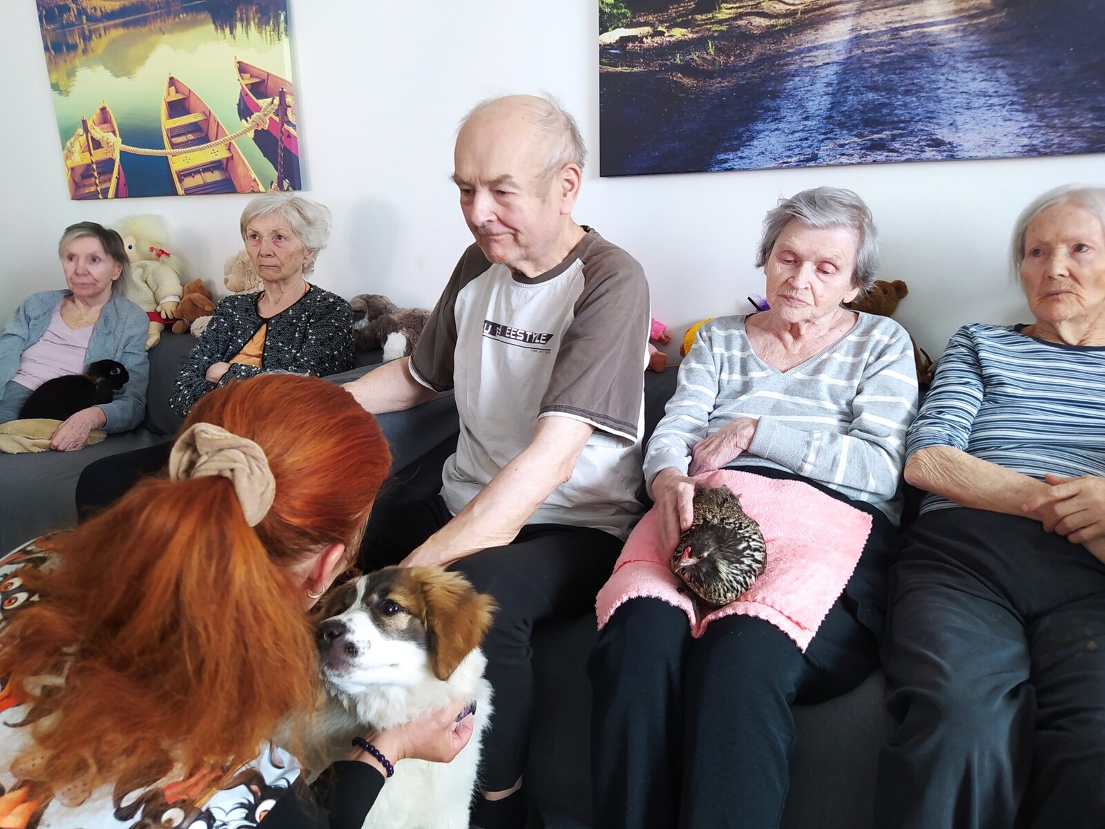 Na klienty domova Senevida Jasmín se přijel podívat pořádný zvěřinec. 🤔 No a když říkáme pořádný, tak to myslíme opravdu vážně. 👍 Na včerejší zooterapii nás navštívil králík, slepičky s kohoutkem, krásná číča a také psí fešandy Kleopatra a Safira. 🐈🐕 Kupodivu veliký obdiv sklidily právě slepičky. 🐔 Což naprosto chápeme, protože jak často se člověku povede si pomazlit slepici nebo kohouta? 🐓😀