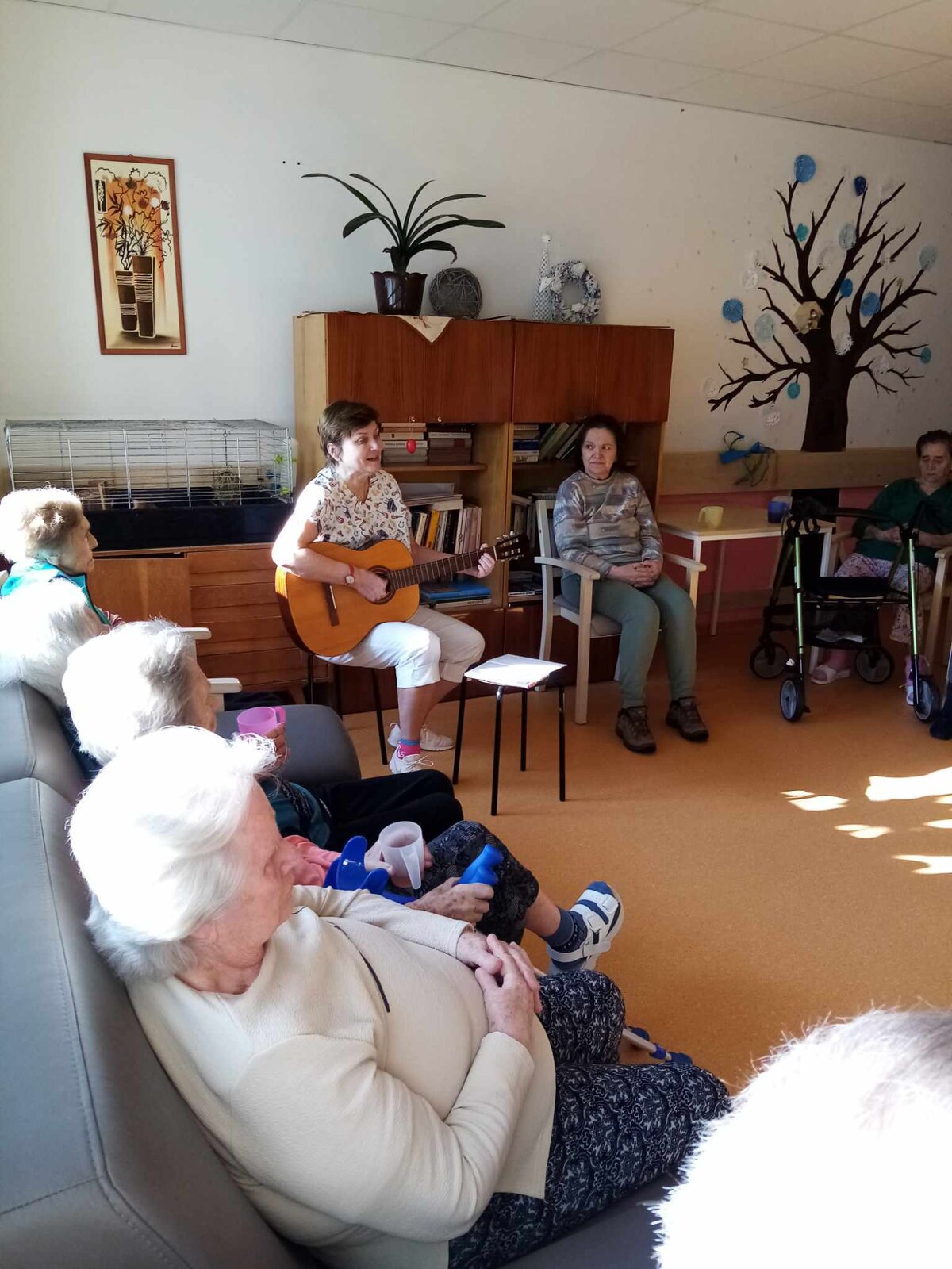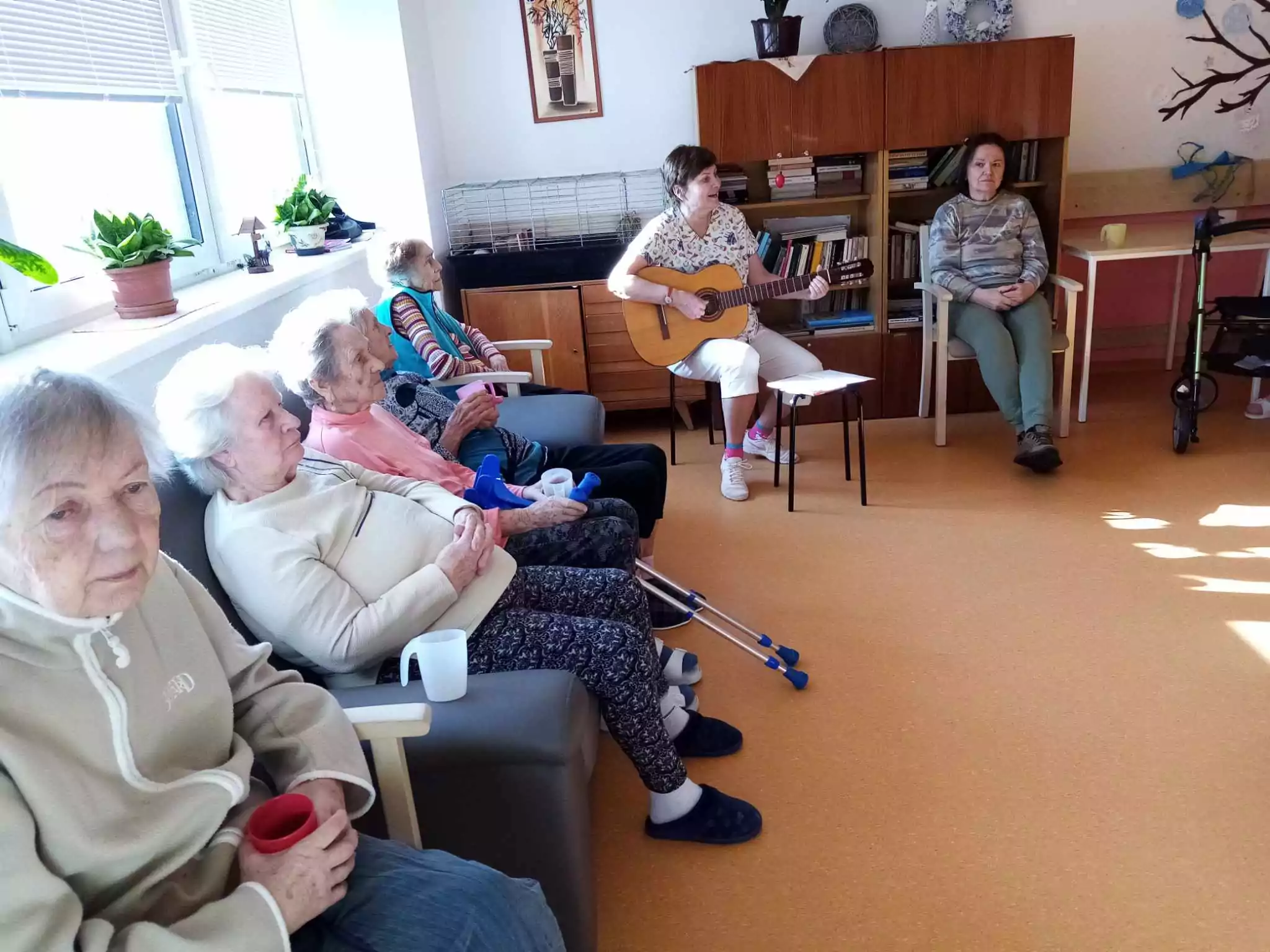 Mezi velmi oblíbené činnosti patří i zpívání s paní Jitkou. A pokud se zrovna nelinou zařízením tóny známých písní, trénuje paní Jitka s našimi klienty paměť a kognitivní schopnosti.