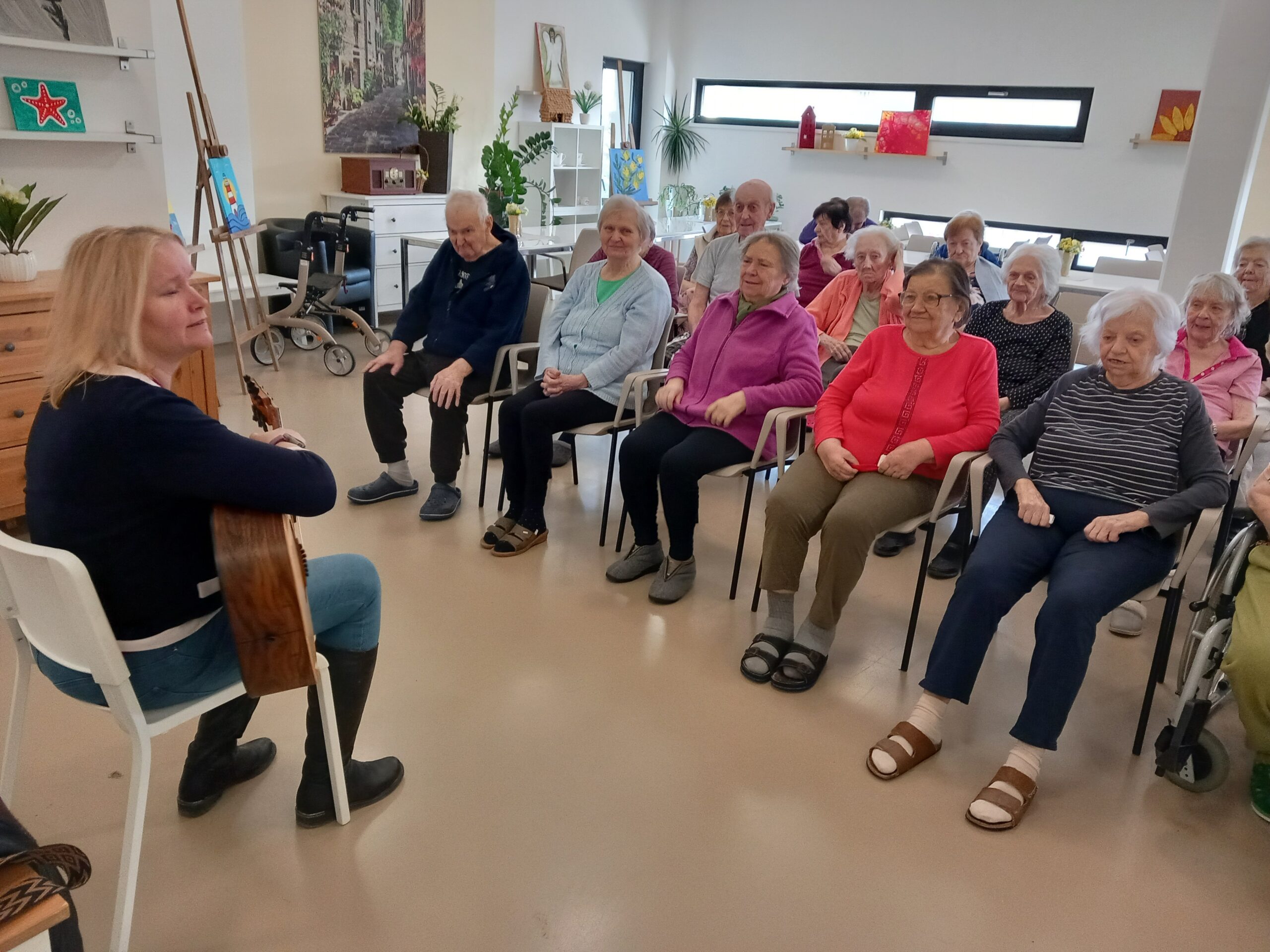V Senevidě Zátiší s Terezií Vítek panovala radostná atmosféra. Klienti si společně zazpívali písničky věnované různým městům. Po celou hodinu tak bylo o hudební program postaráno. Známé melodie rozeznívaly prostor a přinášely úsměvy i příjemné vzpomínky. Setkání nebylo jen hudebním zážitkem, ale také procvičováním paměti, soustředění a slovní zásoby, což přispělo k celkové duševní pohodě všech zúčastněných.