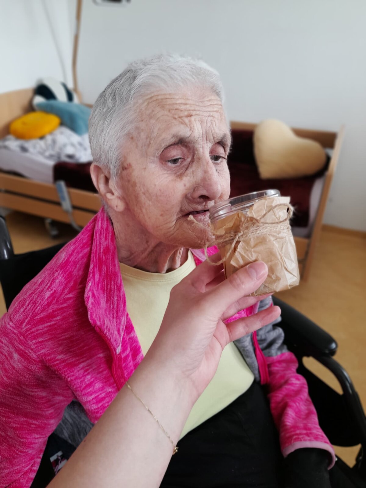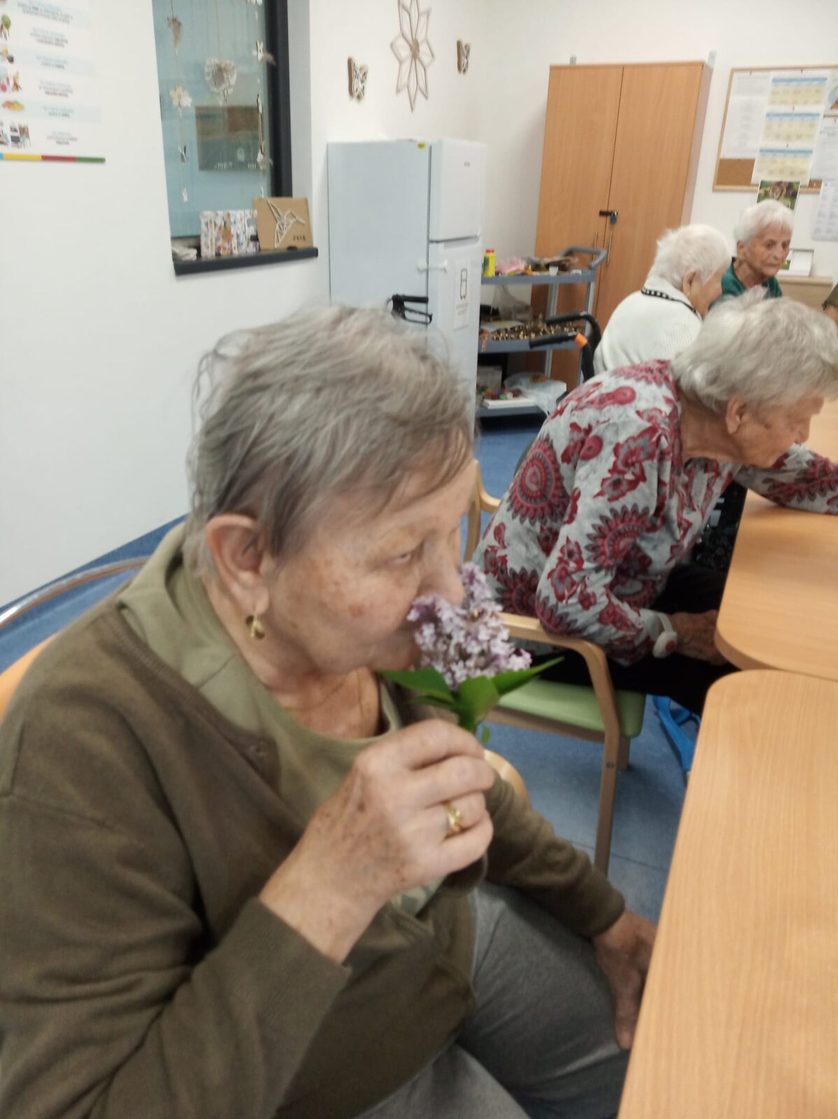 Klienti si prohlíželi barevné předměty, přivoněli k bylinkám a esencím, a rukama objevovali různé textury – od hebkých látek až po přírodní materiály. Tato forma aktivizace podporuje paměť, vnímání a přináší radost z přítomného okamžiku.