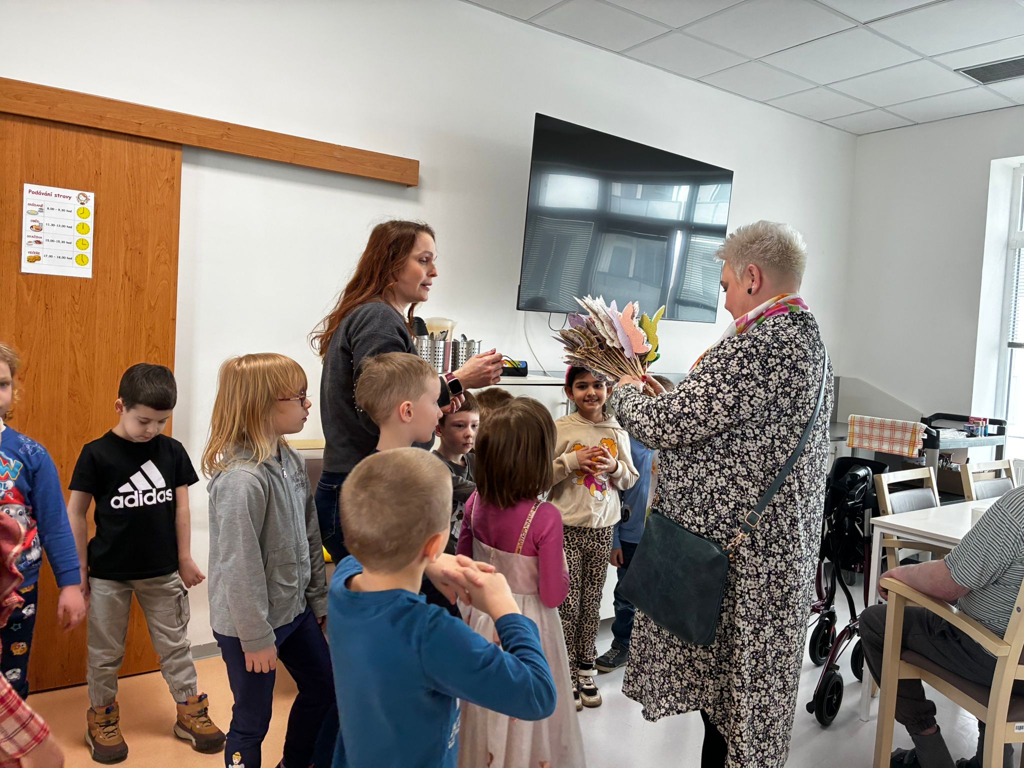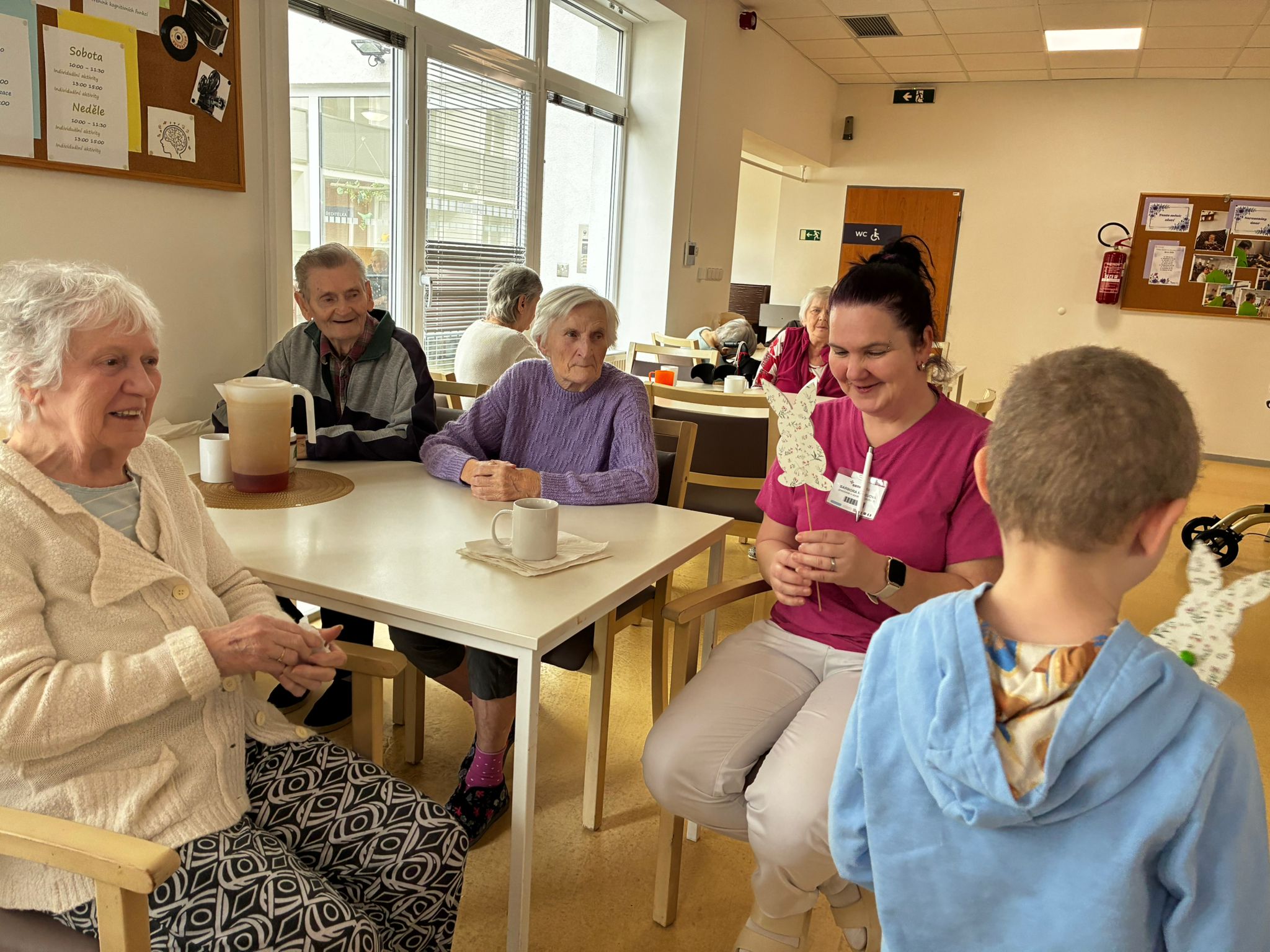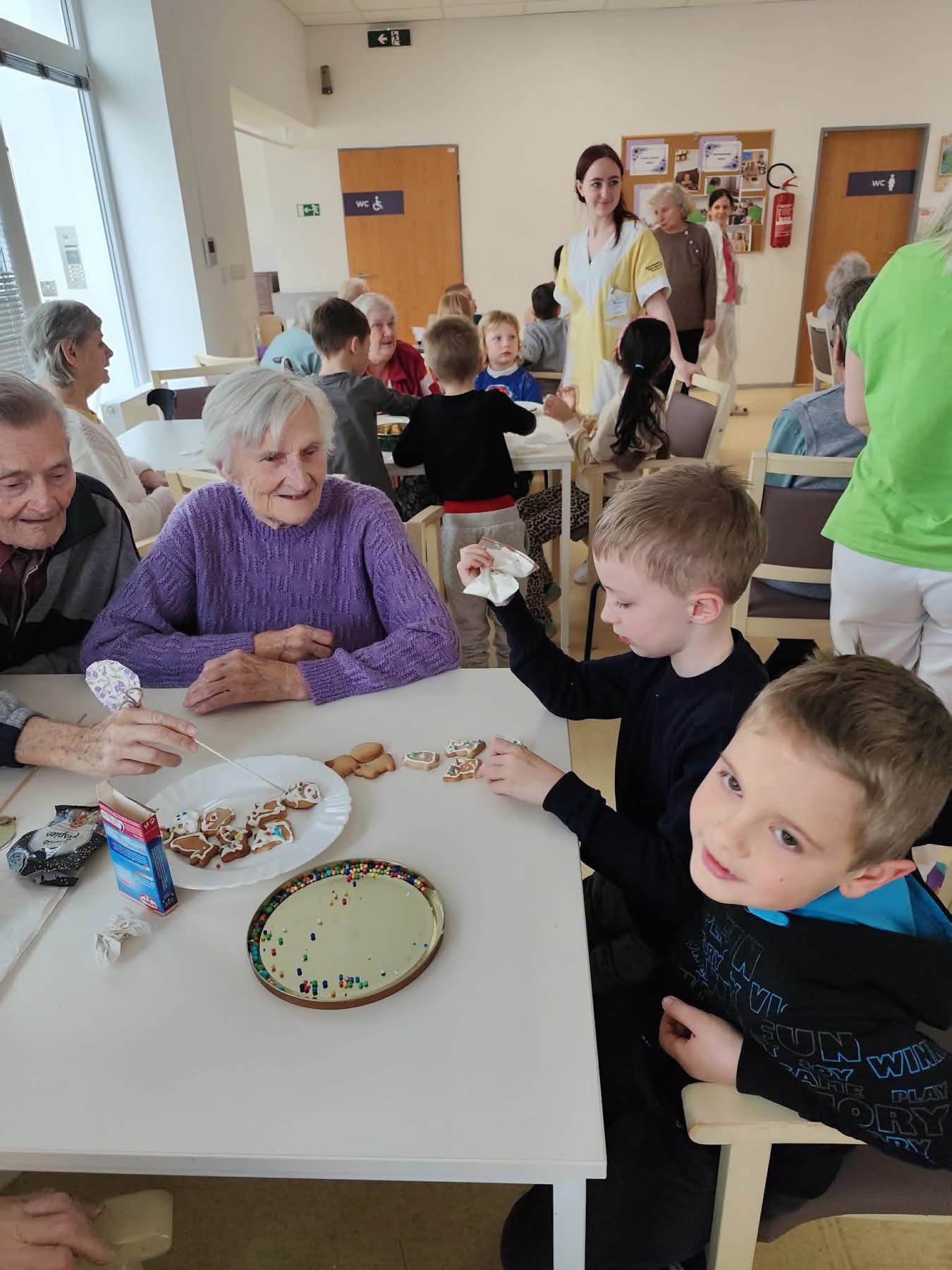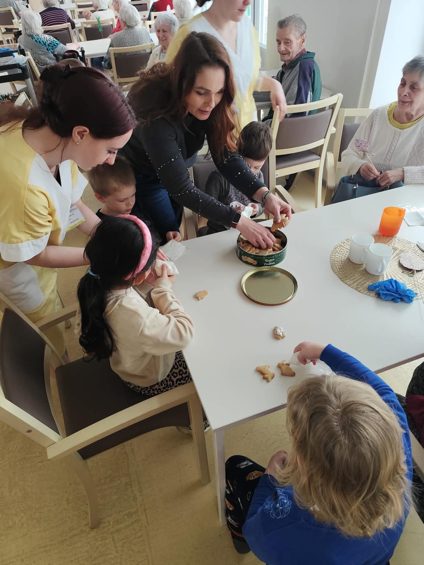 Nejdříve klientům zazpívaly, a pak společně zdobili velikonoční perníčky a malovali obrázky.