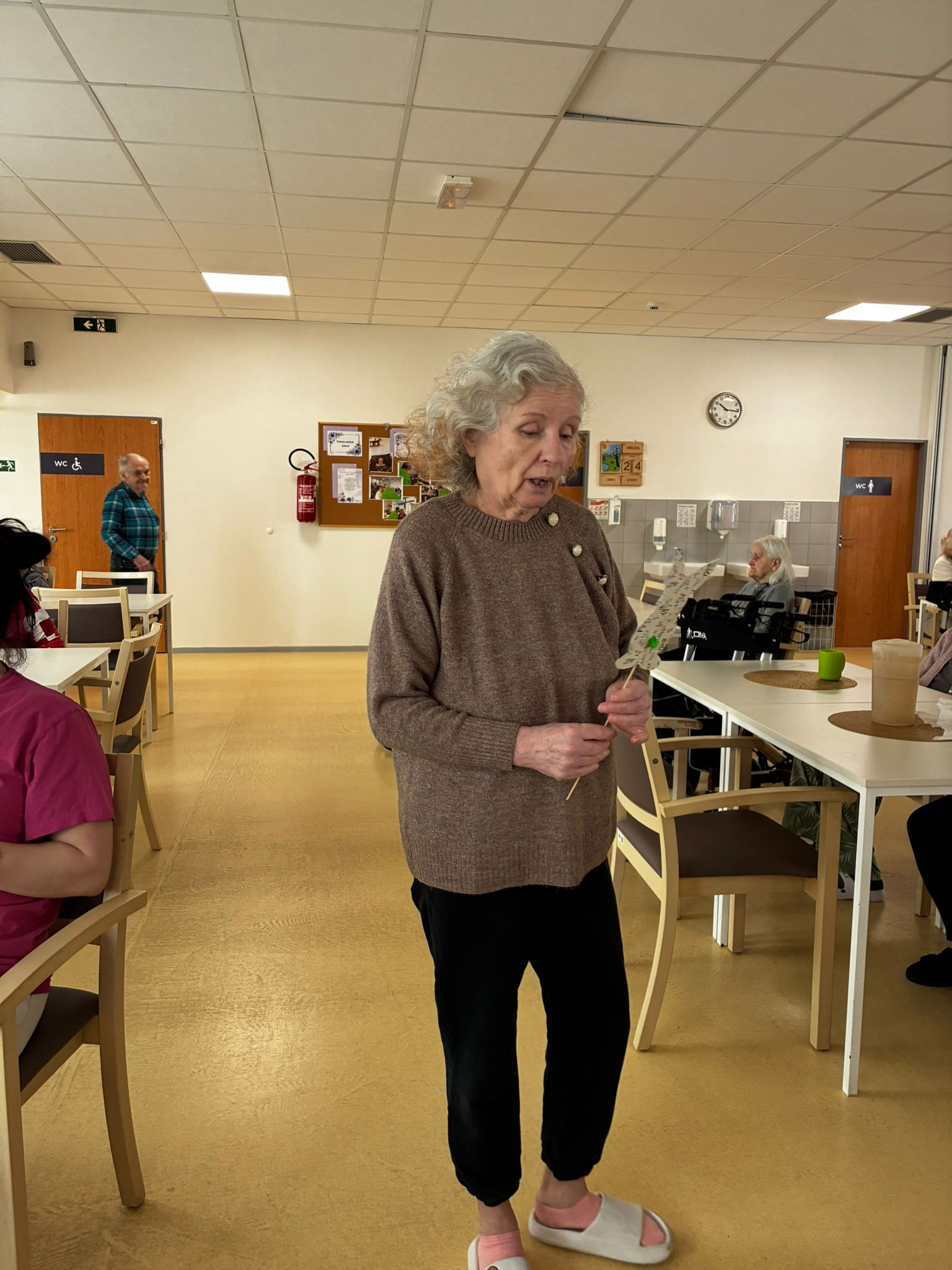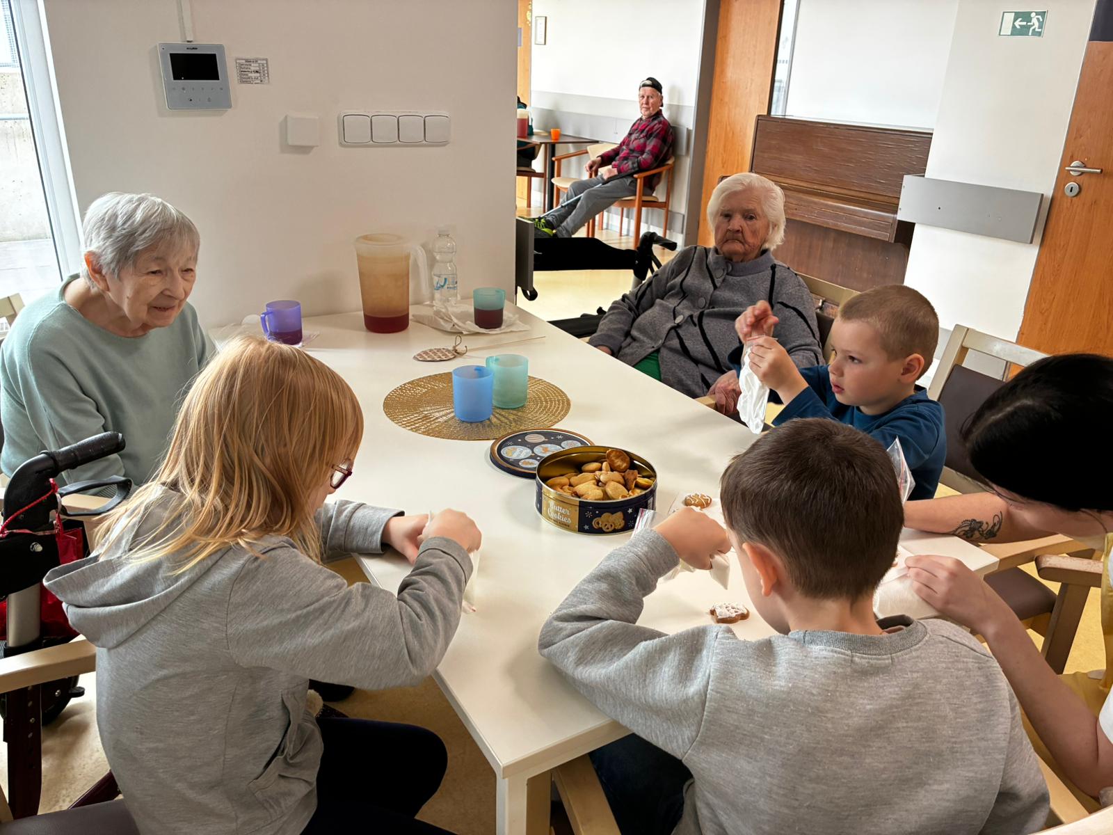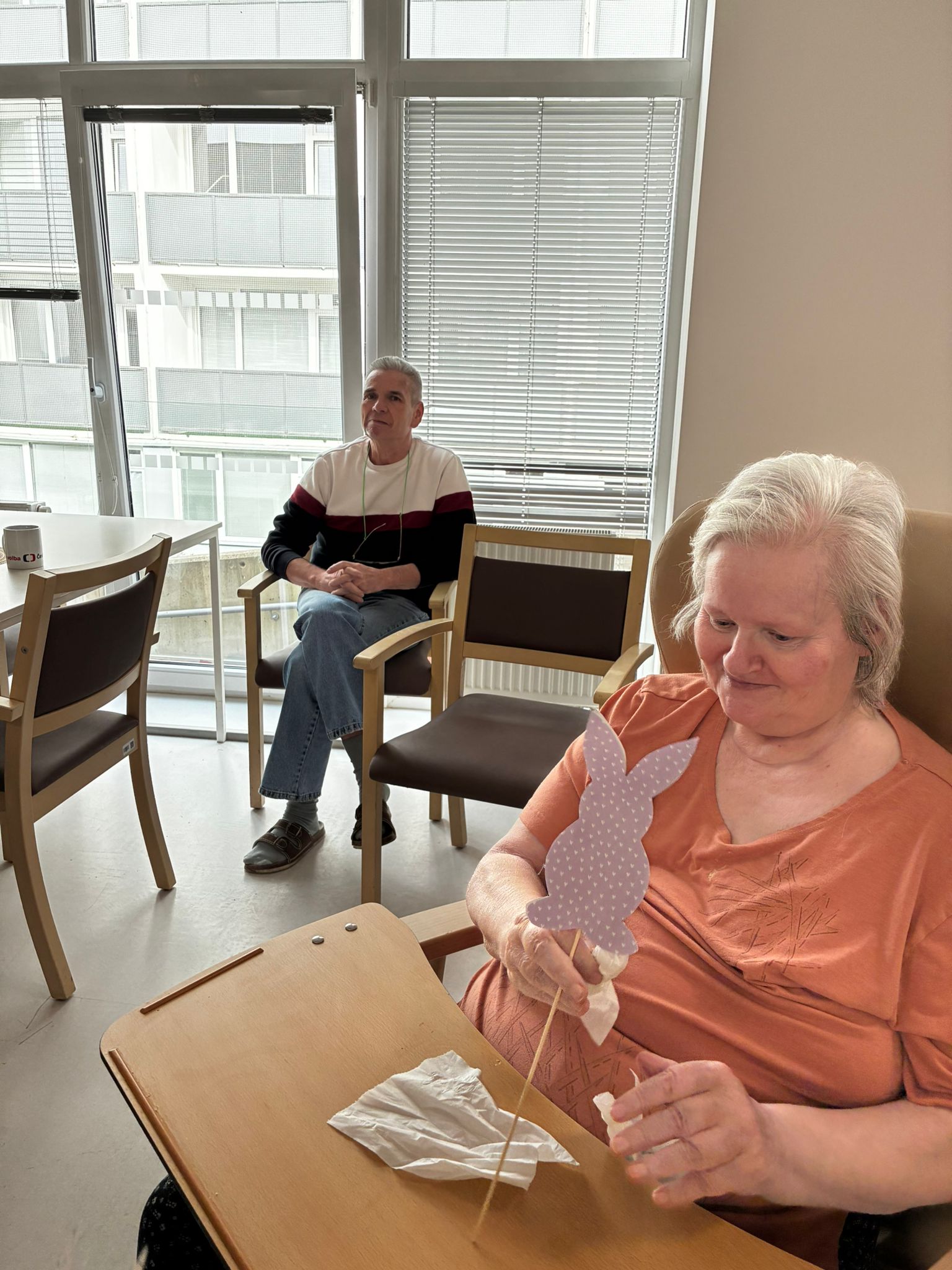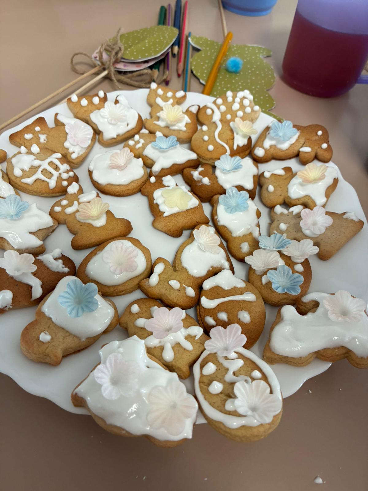 Nejdříve klientům zazpívaly, a pak společně zdobili velikonoční perníčky a malovali obrázky.