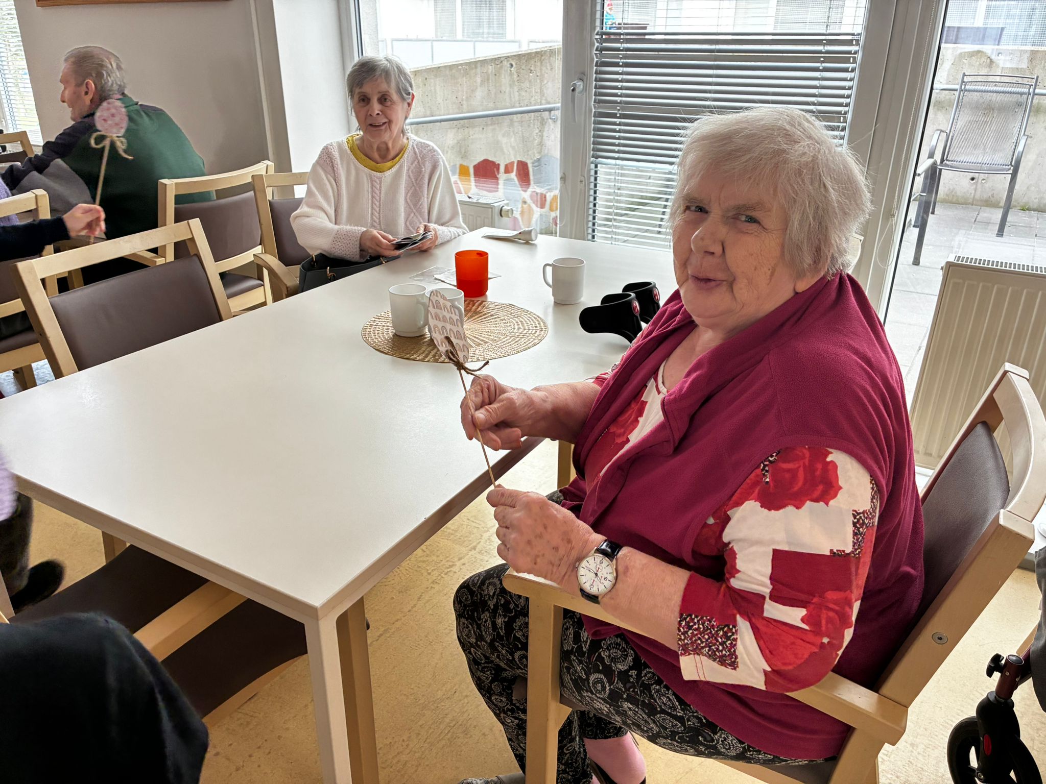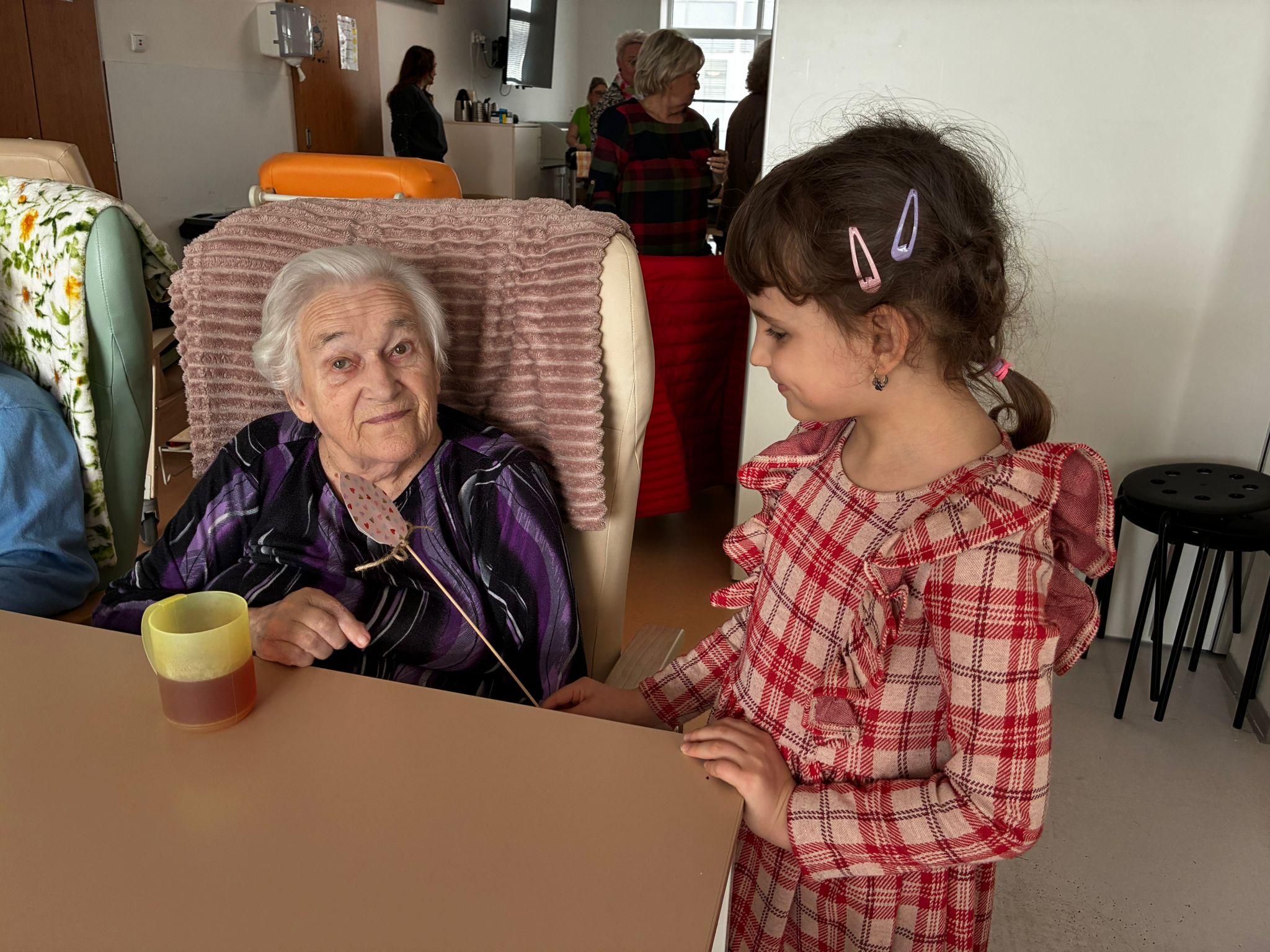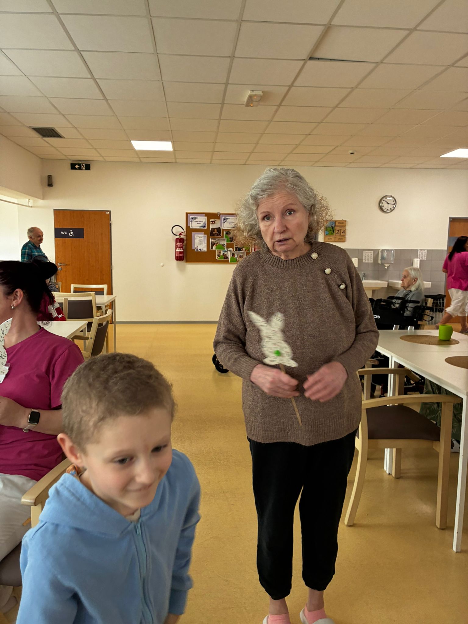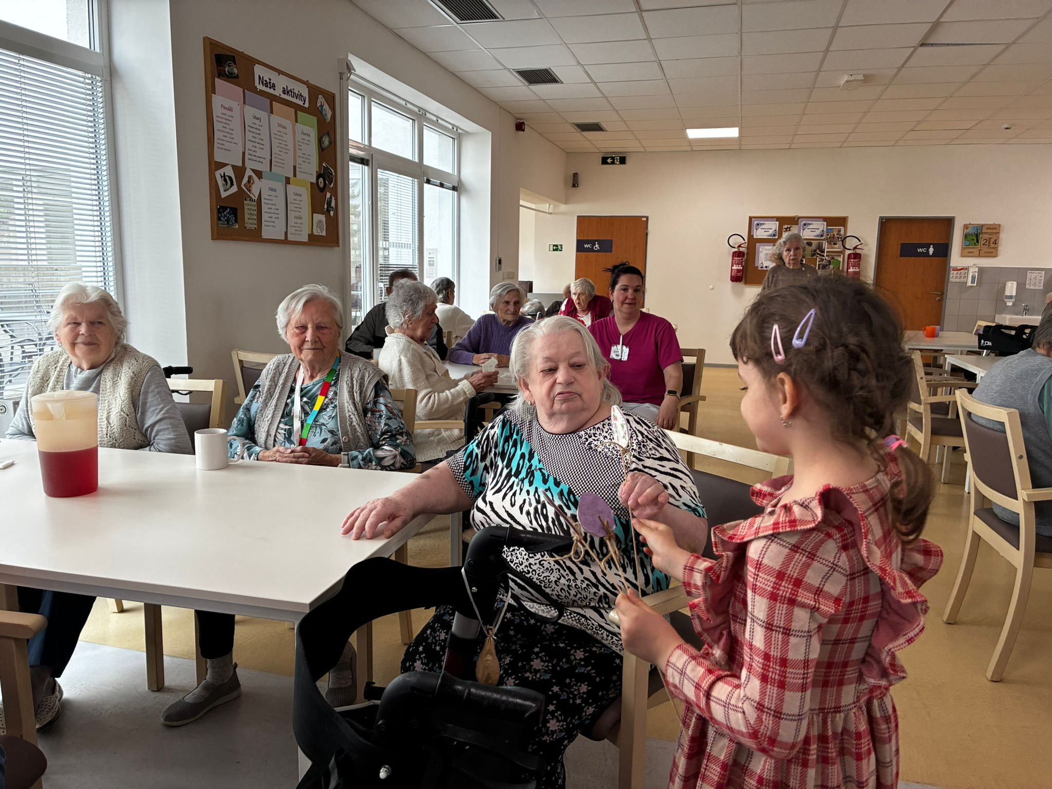 Nejdříve klientům zazpívaly, a pak společně zdobili velikonoční perníčky a malovali obrázky.