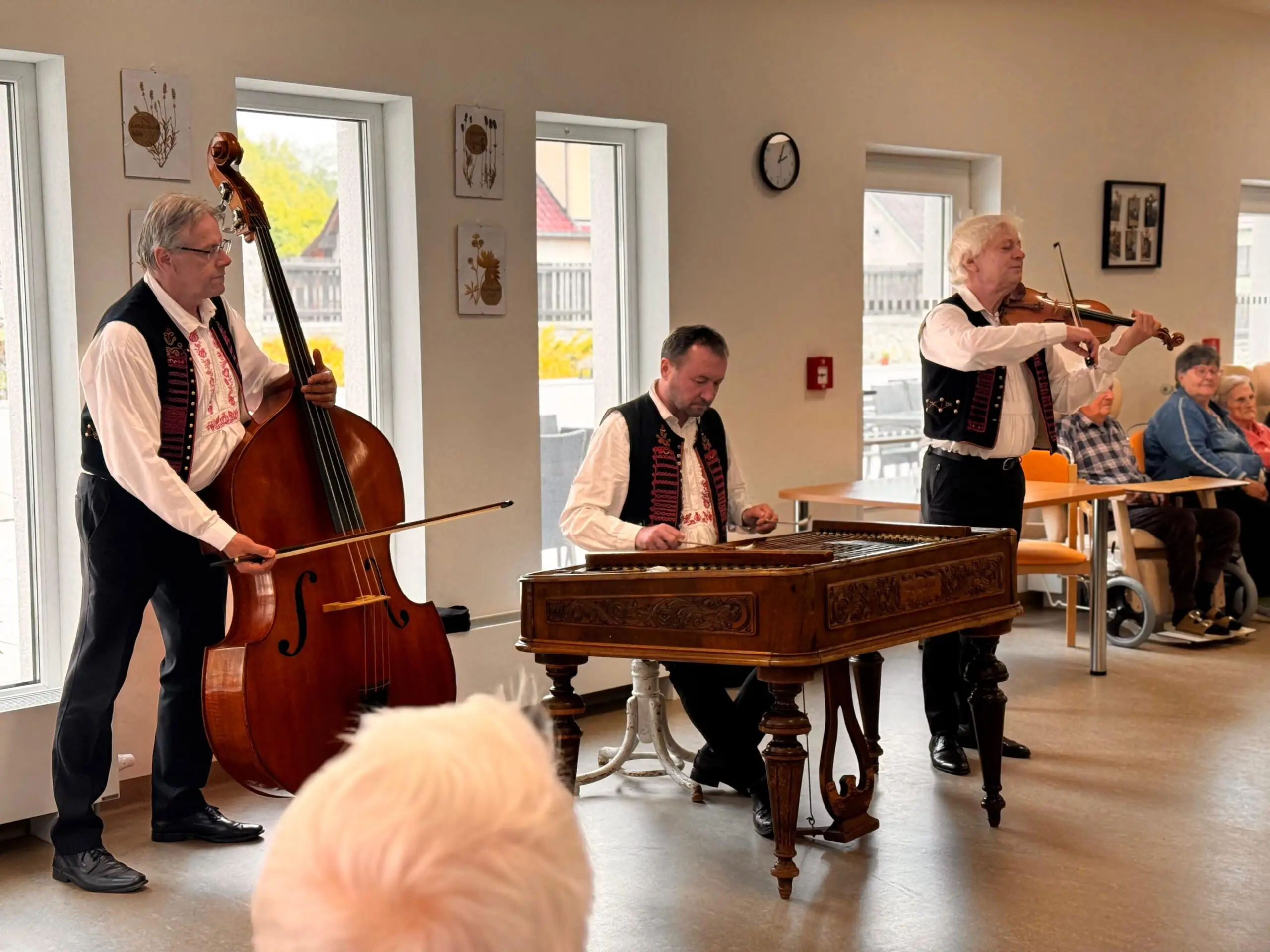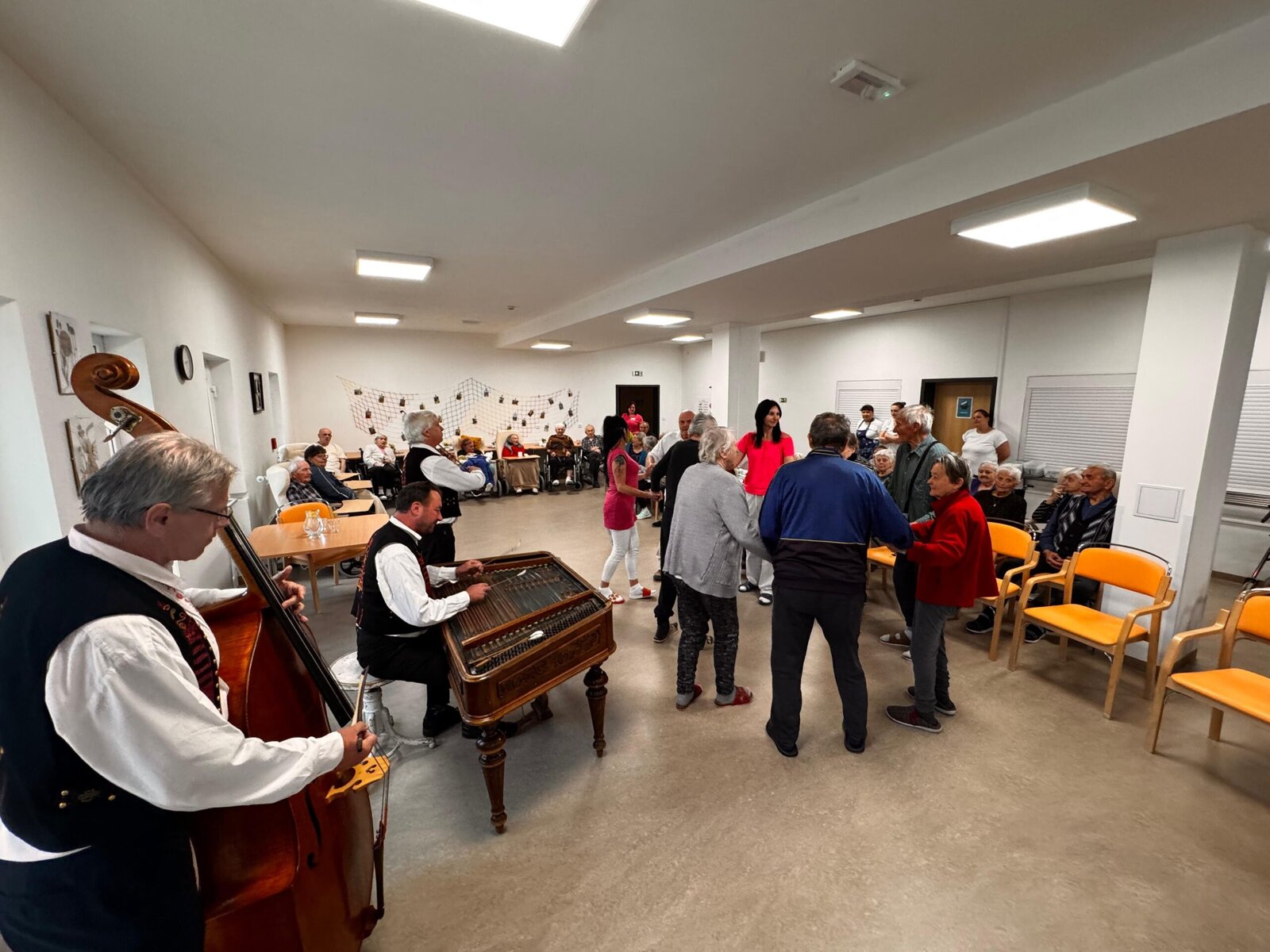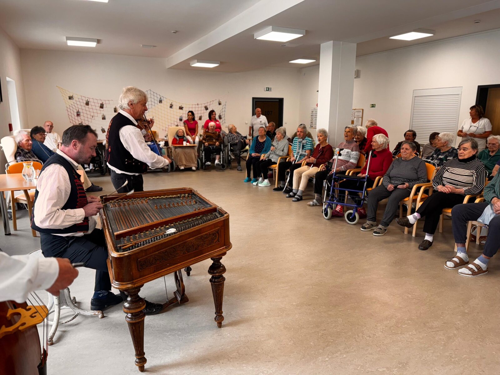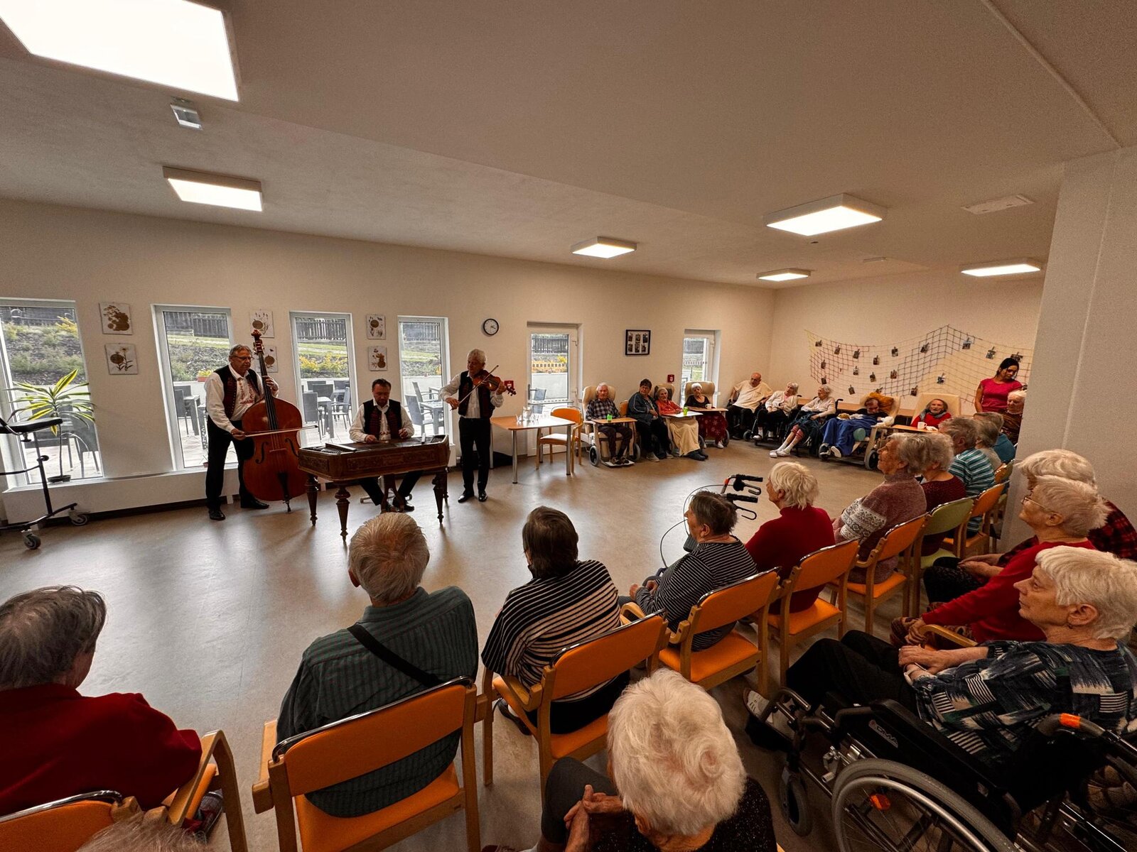 Naši klienti si vystoupení opravdu užili — zpívali, tleskali do rytmu a někteří si s chutí i zatančili. Hudba má kouzelnou moc a dnes nám znovu připomněla, jak důležité jsou společné chvíle a kulturní zážitky.