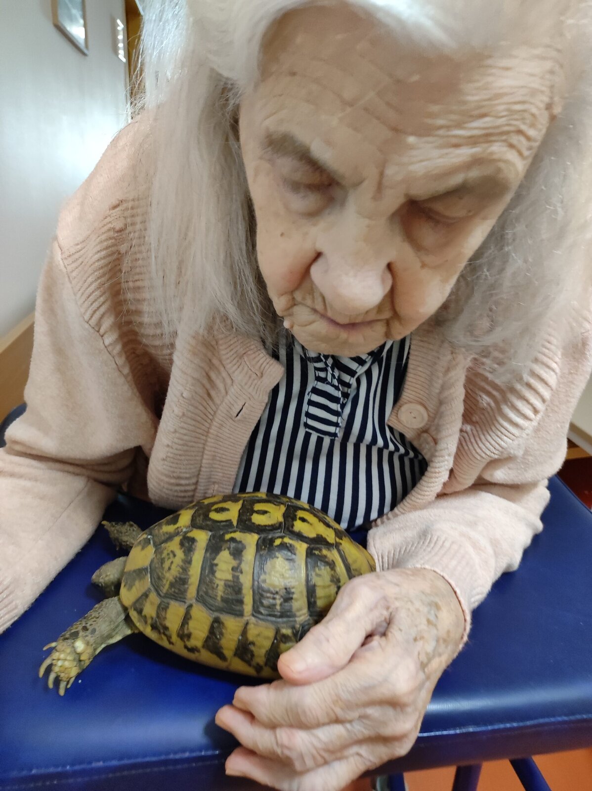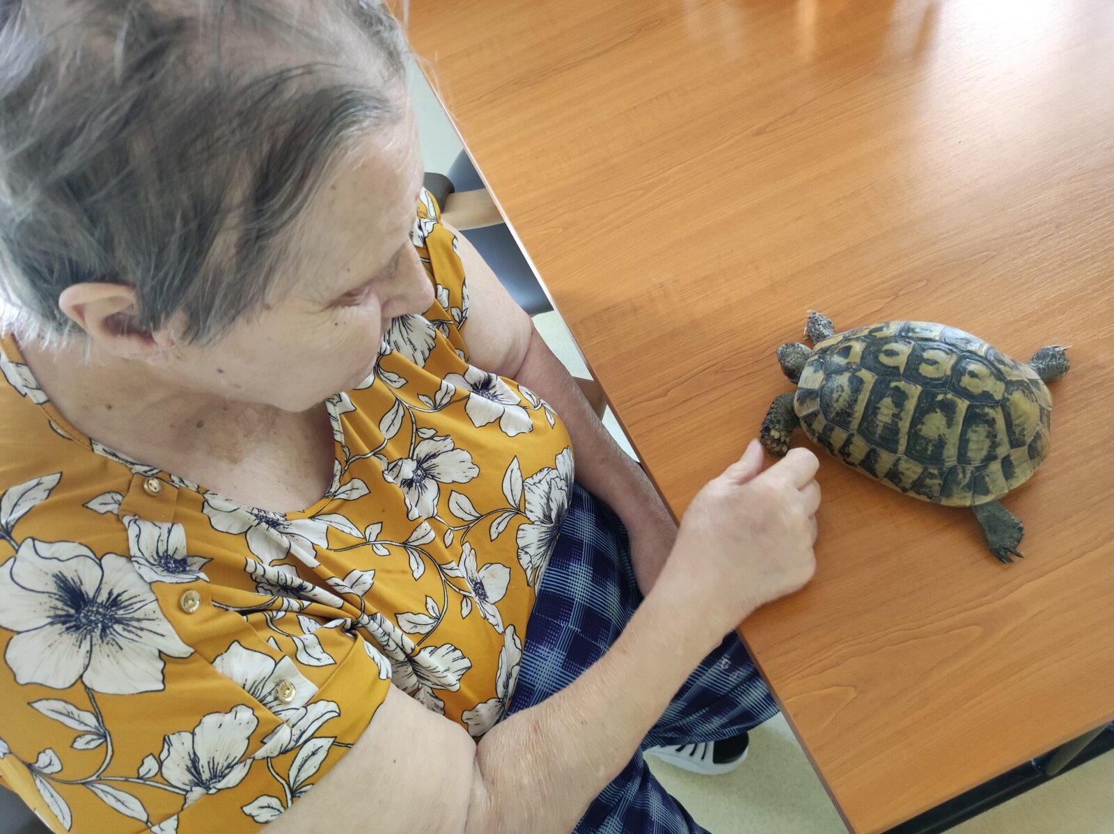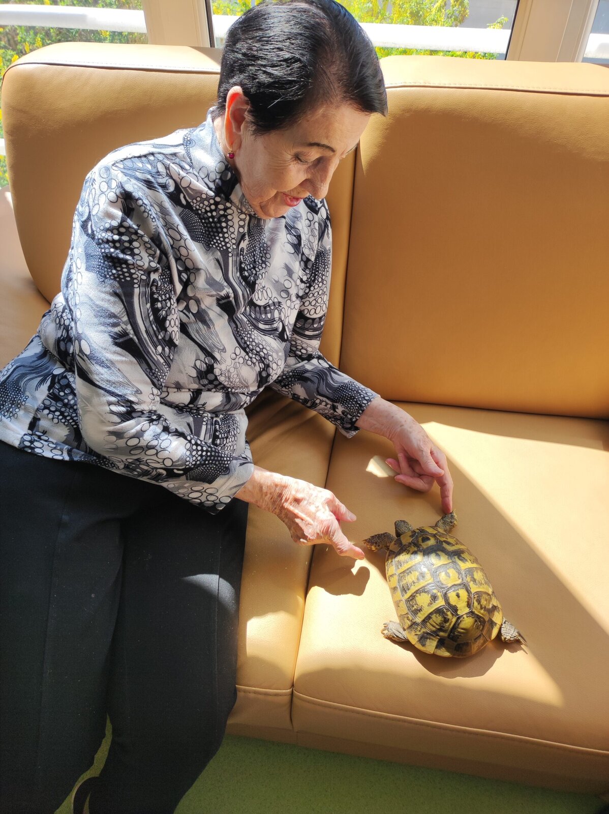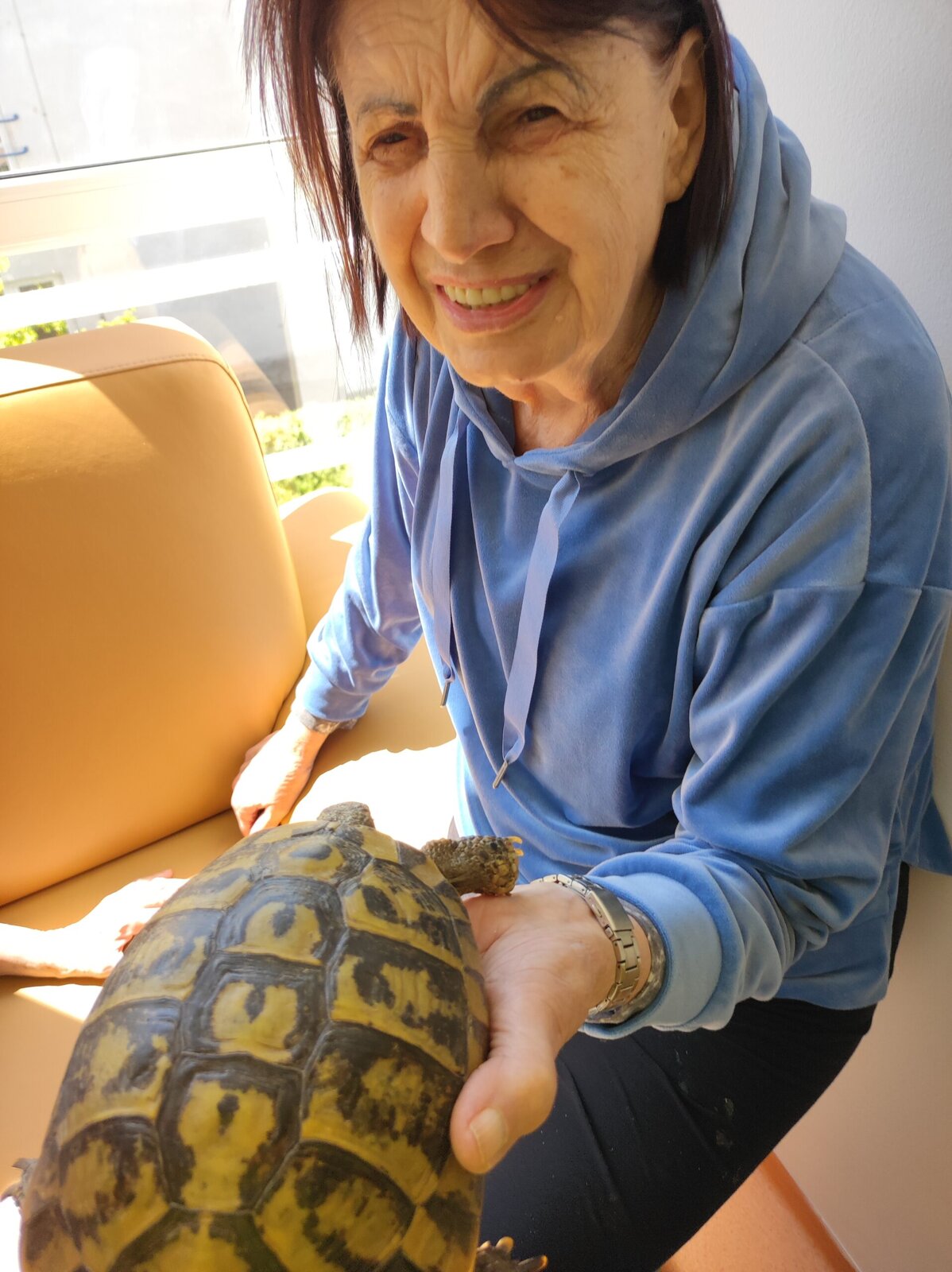 Klienty v Senevida Zlín navštívila želva. Pověděli jsme si něco o historii želv. Klienti měli z její návštěvy radost.